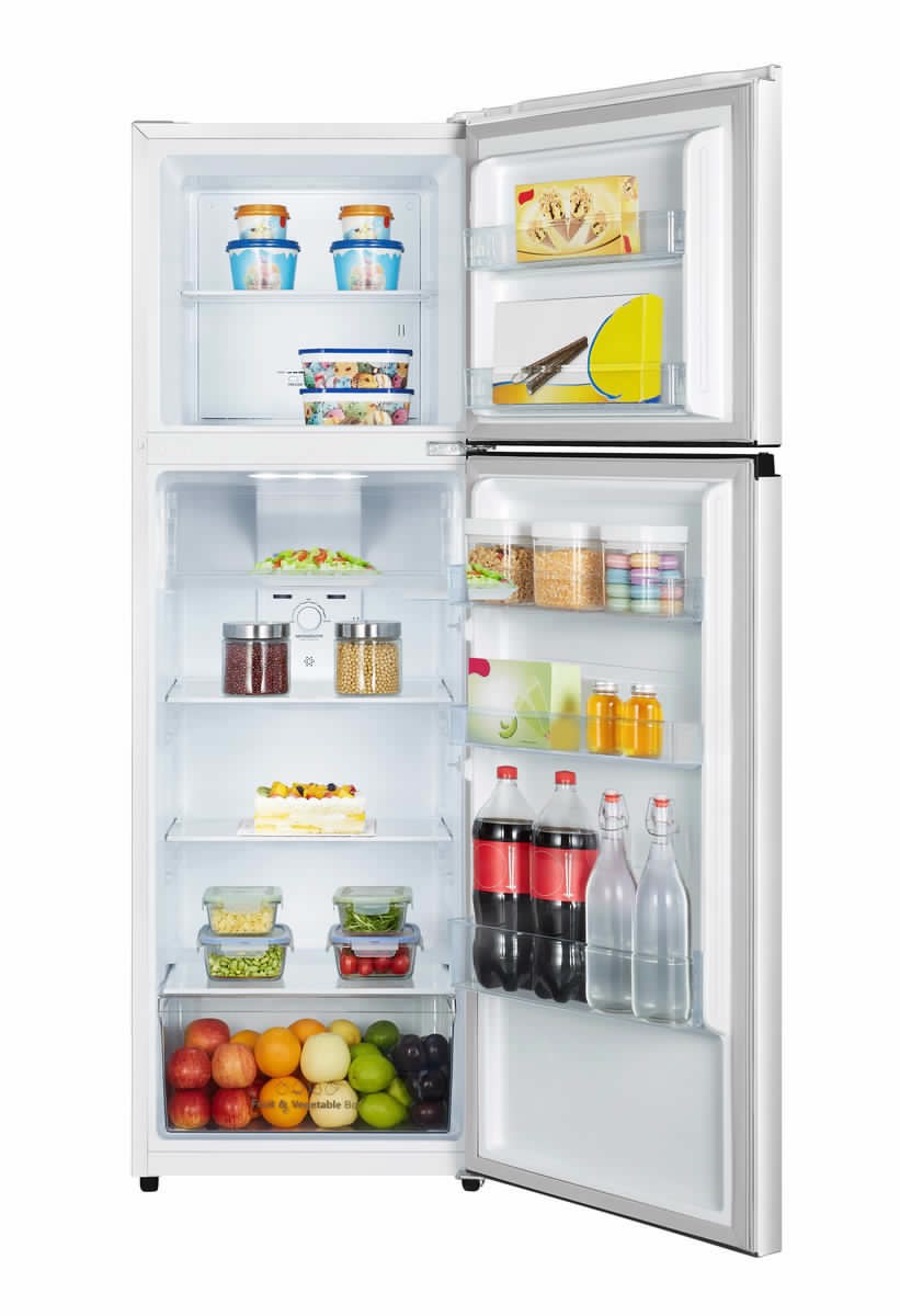 Hisense RT327N4AWE. Capacità netta totale: 249 L. Cerniera porta: Destra. Classe climatica: ST-T, Emissione acustica: 41 dB. Capacità netta frigorifero: 197 L, Numero di ripiani frigorifero: 3, Numero di cassetti per verdura: 1. Capacità netta congelatore: 52 L, No Frost (congelatore). Classe efficienza energetica: E, Consumo energetico annuo: 192 kWh. Colore del prodotto: Bianco