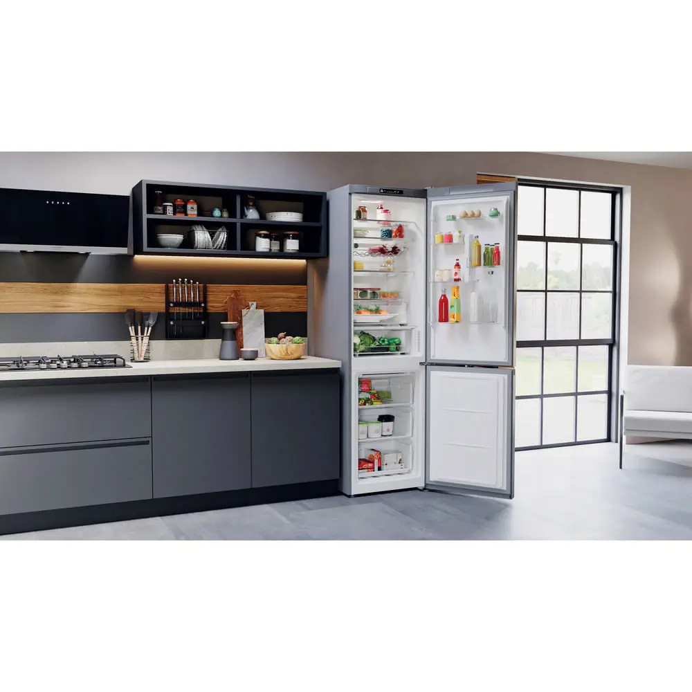 Caratteristiche di questo frigorifero combinato a libera installazione Hotpoint: modello alto e capiente, adatto per le esigenze di tutta la famiglia. No Frost, la tecnologia che previene efficacemente la formazione di ghiaccio nel congelatore riducendo i livelli di umidità. Ripiani in vetro, robusti ed eleganti al tempo stesso. Comodo porta-bottiglie per conservare le bottiglie con sicurezza.