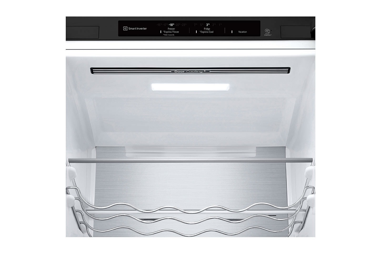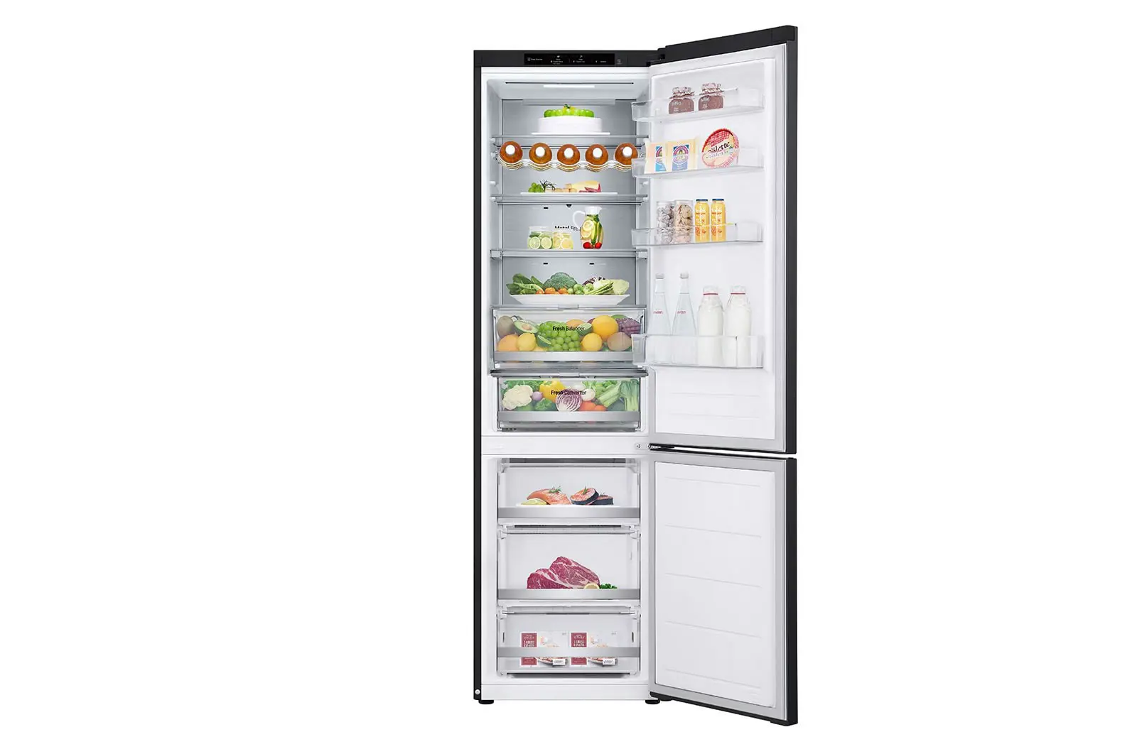 LG GBV7280BEV. Capacità netta totale: 387 L. Tipo di display: LED. Classe climatica: T, Emissione acustica: 33 dB. Capacità netta frigorifero: 233 L, No Frost (frigorifero), Sistema Multi-Airflow (frigorifero), Luce interna, Numero di ripiani frigorifero: 4. Capacità netta congelatore: 110 L, No Frost (congelatore). Compartimento zona fresca. Classe efficienza energetica: B, Consumo energetico annuo: 138 kWh. Colore del prodotto: Nero