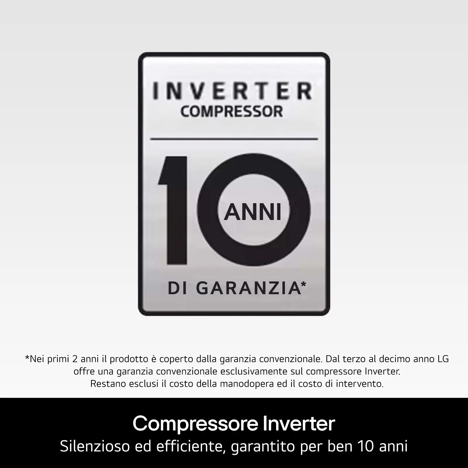 *10 anni di garanzia sul Compressore Inverter. Manodopera e intervento esclusi.