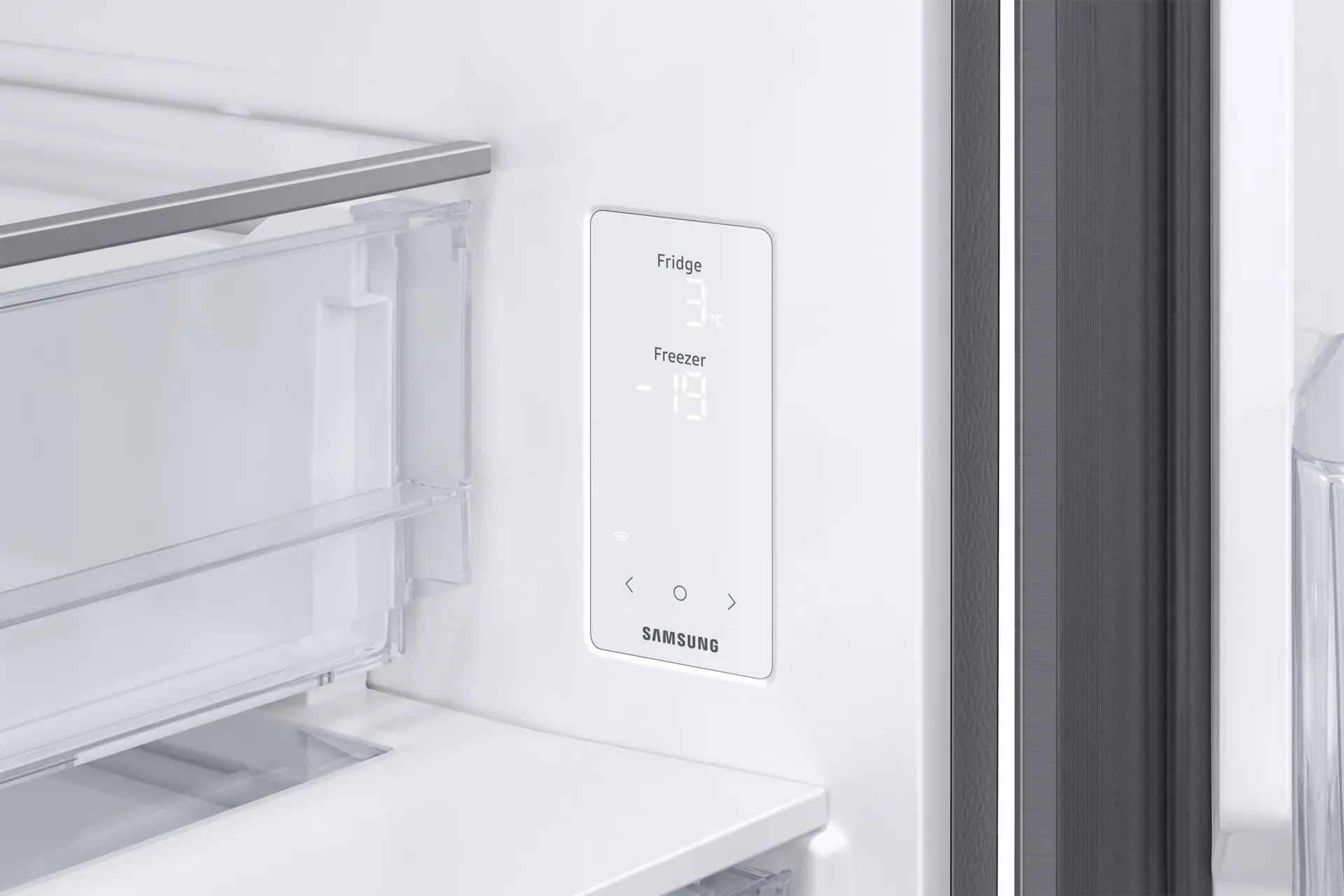 Anche la velocità è importante. Premendo un pulsante, la funzione Power Cool fa circolare un potente getto daria fredda nel frigorifero per raffreddare rapidamente cibi e bevande. La funzione Power Freeze fa la stessa cosa nel freezer. È il massimo per congelare o raffreddare i cibi al punto giusto