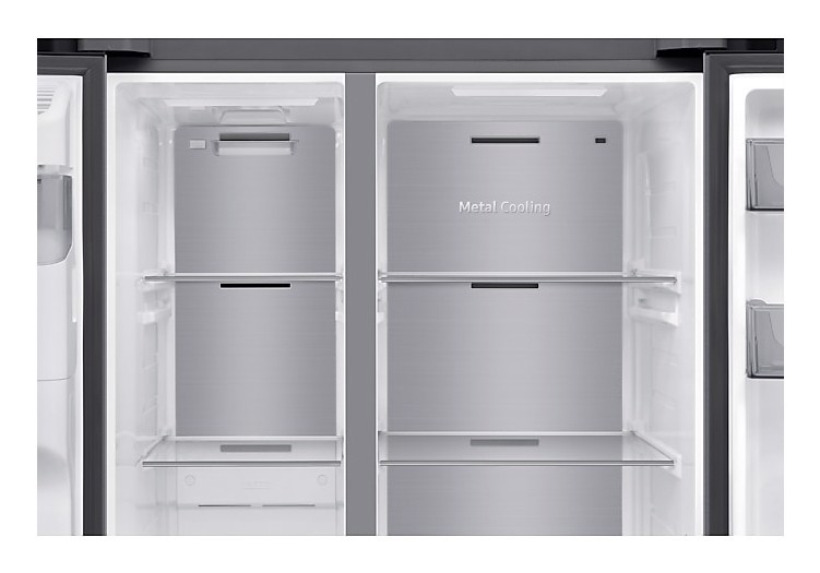 Mantieni sempre stabile la temperatura per preservare la freschezza dei cibi anche se la porta viene aperta di frequente. Il condotto Metal Cooling posizionato nella parete di fondo trattiene il freddo e compensa subito eventuali perdite di calore. Inoltre, è facile da pulire ed è anche esteticamente gradevole.