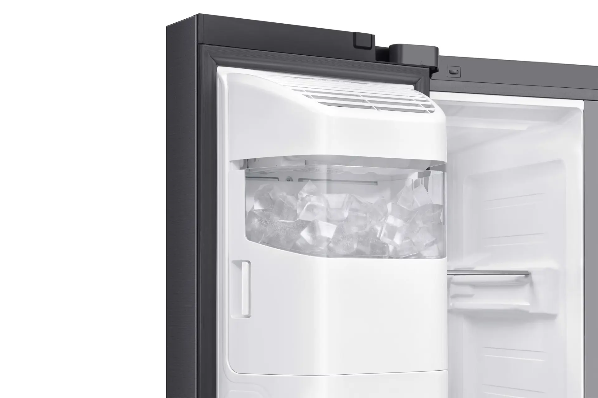 Bevande fresche o con ghiaccio senza riempire ogni volta il serbatoio dellacqua. Il dispenser di acqua e ghiaccio è integrato nella parte anteriore e può essere facilmente collegato alla rete idrica. Basta un tocco per ottenere subito un bicchiere dacqua ghiacciata o tanti cubetti di ghiaccio per i succhi di frutta e per tutte le tue bevande preferite.
