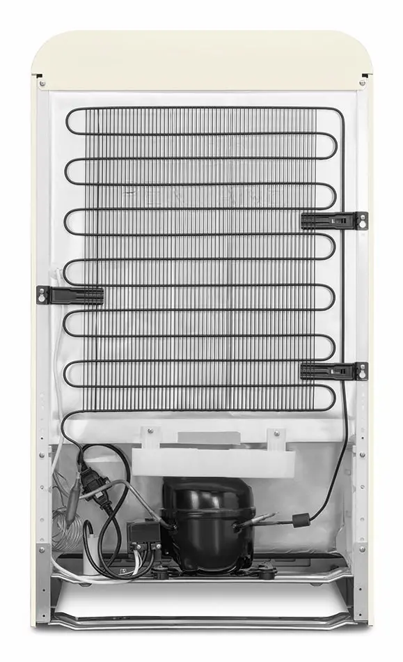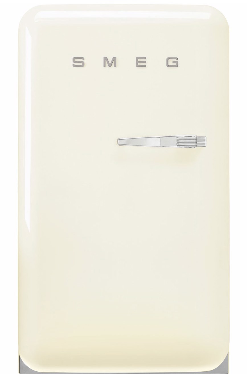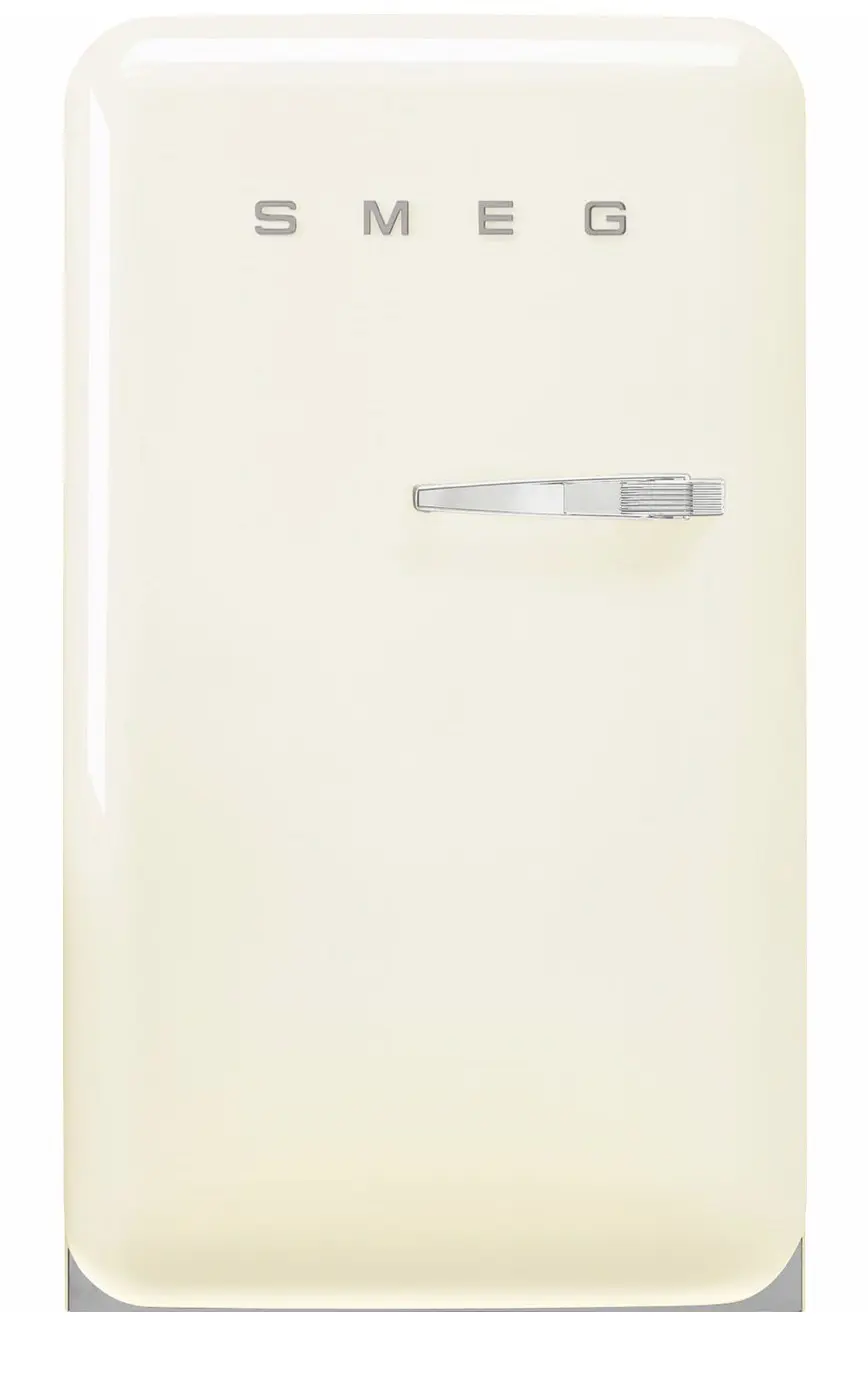 Smeg FAB10LCR6. Capacità netta frigorifero: 105 L, Classe climatica: N-T, Emissione acustica: 35 dB. Numero di ripiani frigorifero: 1, Numero di cassetti per verdura: 1. Tipo di lampada: LED. Cerniera porta: Sinistra. Consumo energetico annuo: 115 kWh, Classe efficienza energetica: D. Peso: 41 kg. Colore del prodotto: Crema