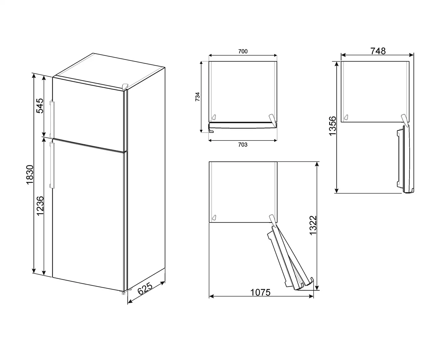 Smeg FD70EN4HM. Capacità netta totale: 432 L. Cerniera porta: Destra, Tipo di display: LED. Classe climatica: ST-T, Emissione acustica: 41 dB. Capacità netta frigorifero: 335 L, No Frost (frigorifero), Sistema Multi-Airflow (frigorifero), Luce interna. Capacità netta congelatore: 97 L, Capacità di congelamento: 5 kg/24h, No Frost (congelatore). Compartimento zona fresca. Classe efficienza energetica: E, Consumo energetico annuo: 298 kWh