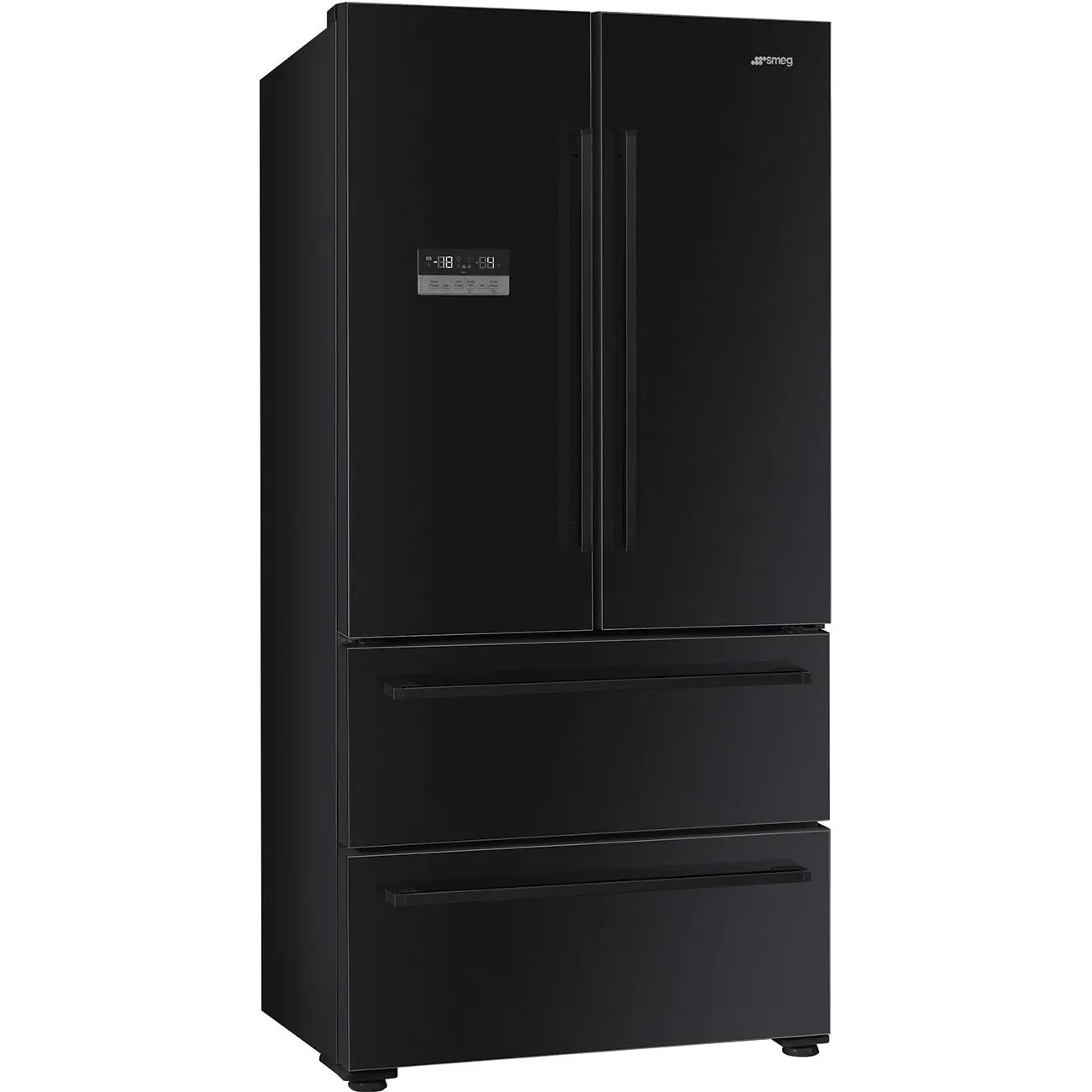 Smeg FQ55FNDF. Posizionamento dell'apparecchio: Libera installazione, Colore del prodotto: Nero, Design del prodotto: Porta francese. Capacità netta totale: 539 L, Classe climatica: SN-ST, Classe emissione rumore: B. Capacità netta frigorifero: 387 L. Capacità netta congelatore: 152 L, Posizione del congelatore: Posto in basso, Capacità di congelamento: 10,7 kg/24h. Lunghezza cavo: 2,4 m