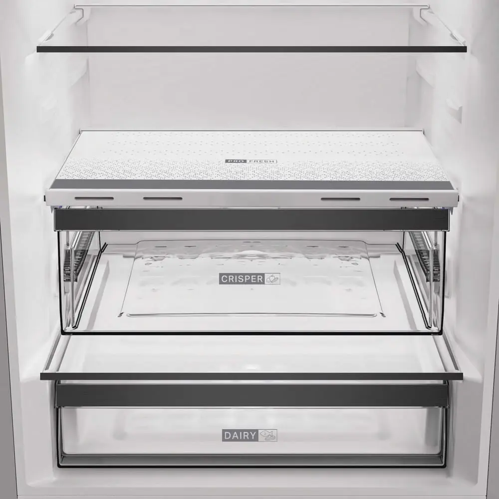 Caratteristiche di questo frigorifero combinato a libera installazione Whirlpool: modello alto e capiente, adatto per le esigenze di tutta la famiglia. Ripiani in vetro con profilati anteriori che aggiungono robustezza, eleganza e maggiore sicurezza. Sensori 6° SENSO che abbassano automaticamente la temperatura all'interno dell'elettrodomestico quando vengono introdotti nuovi alimenti, riducendo così il consumo di energia elettrica. Comodo porta-bottiglie per conservare le bottiglie con sicurezza.