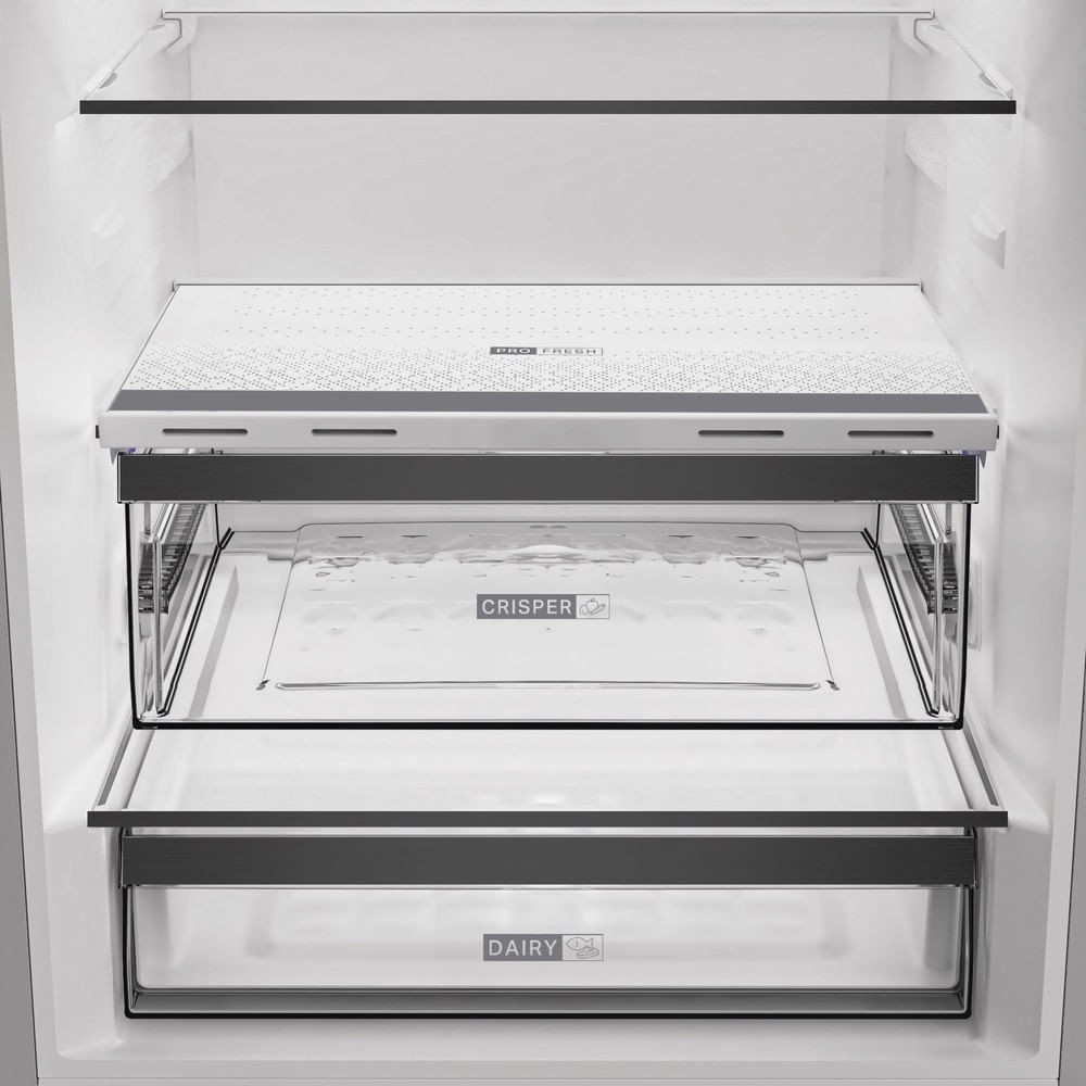 Caratteristiche di questo frigorifero a libera installazione Whirlpool: modello alto e capiente, adatto per le esigenze di tutta la famiglia. Ripiani in vetro, robusti ed eleganti al tempo stesso. Flusso d’aria regolare e uniforme all’interno dell'elettrodomestico, per una ventilazione potenziata. Sensori 6° SENSO che abbassano automaticamente la temperatura all'interno dell'elettrodomestico quando vengono introdotti nuovi alimenti, riducendo così il consumo di energia elettrica. Comodo porta-bottiglie per conservare le bottiglie con sicurezza.