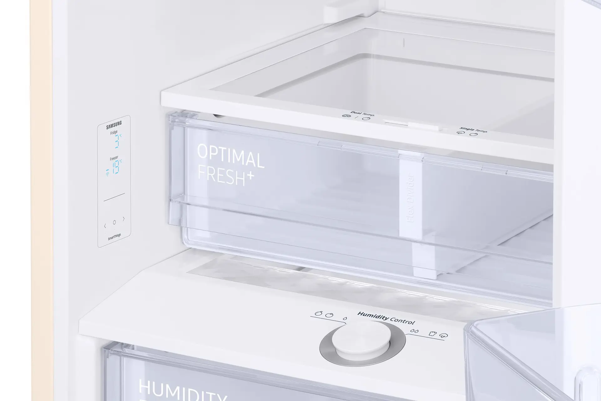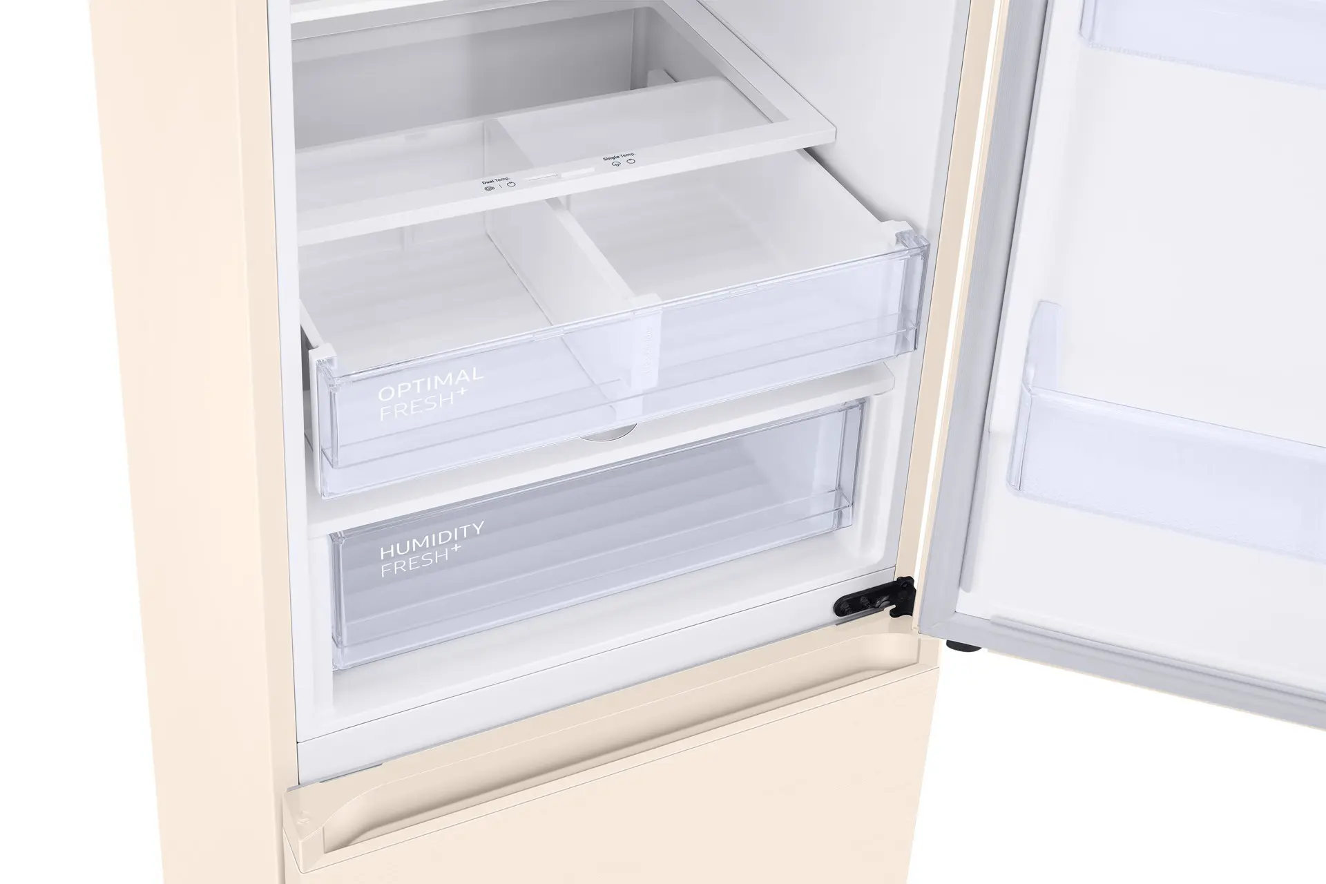 Il comparto Optimal Fresh + può essere utilizzato come cassetto unico o diviso in due zone con temperature diverse. Il lato sinistro è più freddo, per cui carne e pesce possono durare due volte più a lungo. Il lato destro è ideale per preservare la freschezza di frutta e verdura.