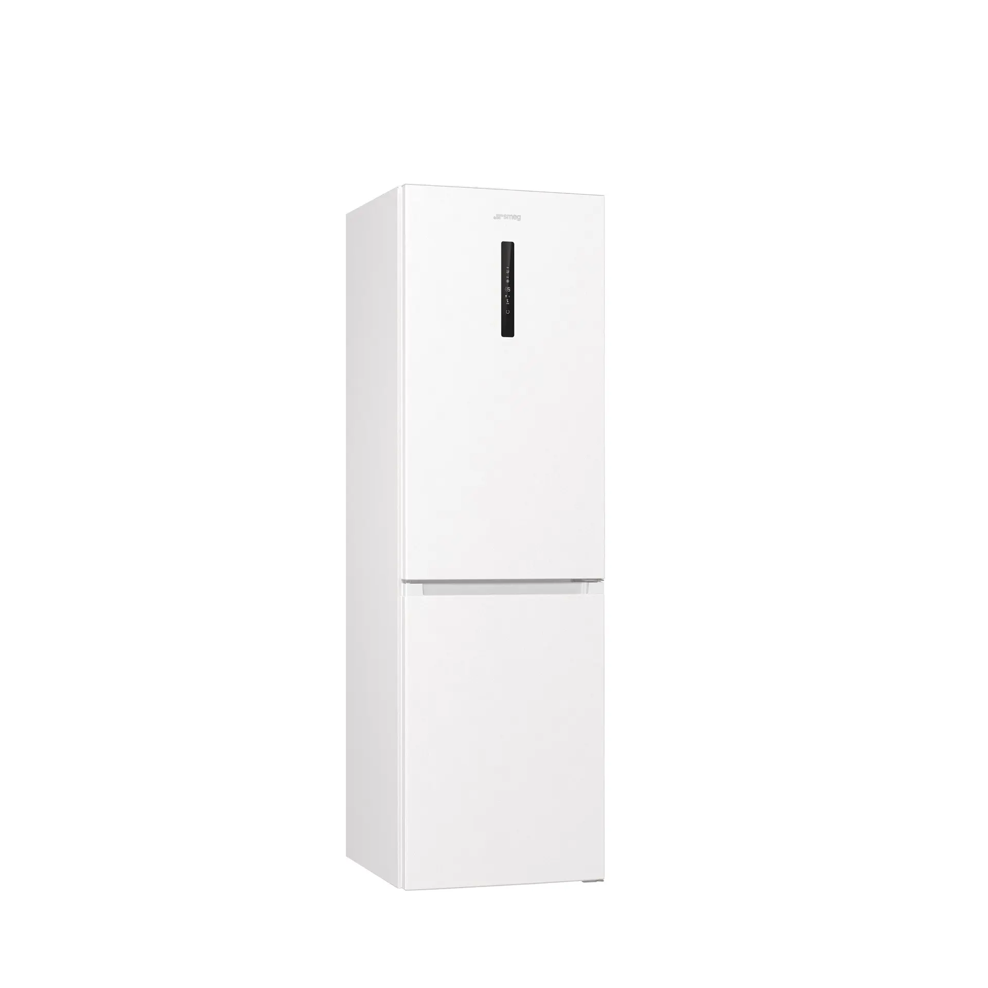 Smeg FC18WDNE. Capacità netta totale: 300 L. Cerniera porta: Destra, Tipo di display: LED. Classe climatica: SN-T, Emissione acustica: 38 dB. Capacità netta frigorifero: 204 L, No Frost (frigorifero), Luce interna, Numero di ripiani frigorifero: 2, Numero di cassetti per verdura: 1. Capacità netta congelatore: 96 L, No Frost (congelatore). Classe efficienza energetica: E, Consumo energetico annuo: 242 kWh. Colore del prodotto: Bianco