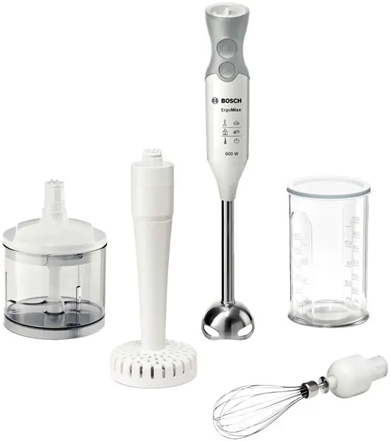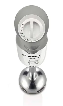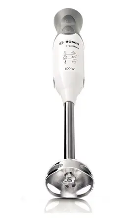 Bosch MSM66155. Capacità ciotola: 0,6 L, Tipo di controllo: Pulsanti. Tipo: Frullatore ad immersione, Colore del prodotto: Grigio, Bianco, Certificazione: CE, ROSTEST, SIQ. Materiale della ciotola di miscelazione: Plastica, Materiale della scocca: Plastica, Materiale lama: Acciaio inossidabile. Potenza: 600 W, Alimentazione: AC, Frequenza di ingresso AC: 50 - 60 Hz. Larghezza: 55 mm, Profondità: 62 mm, Altezza: 393 mm