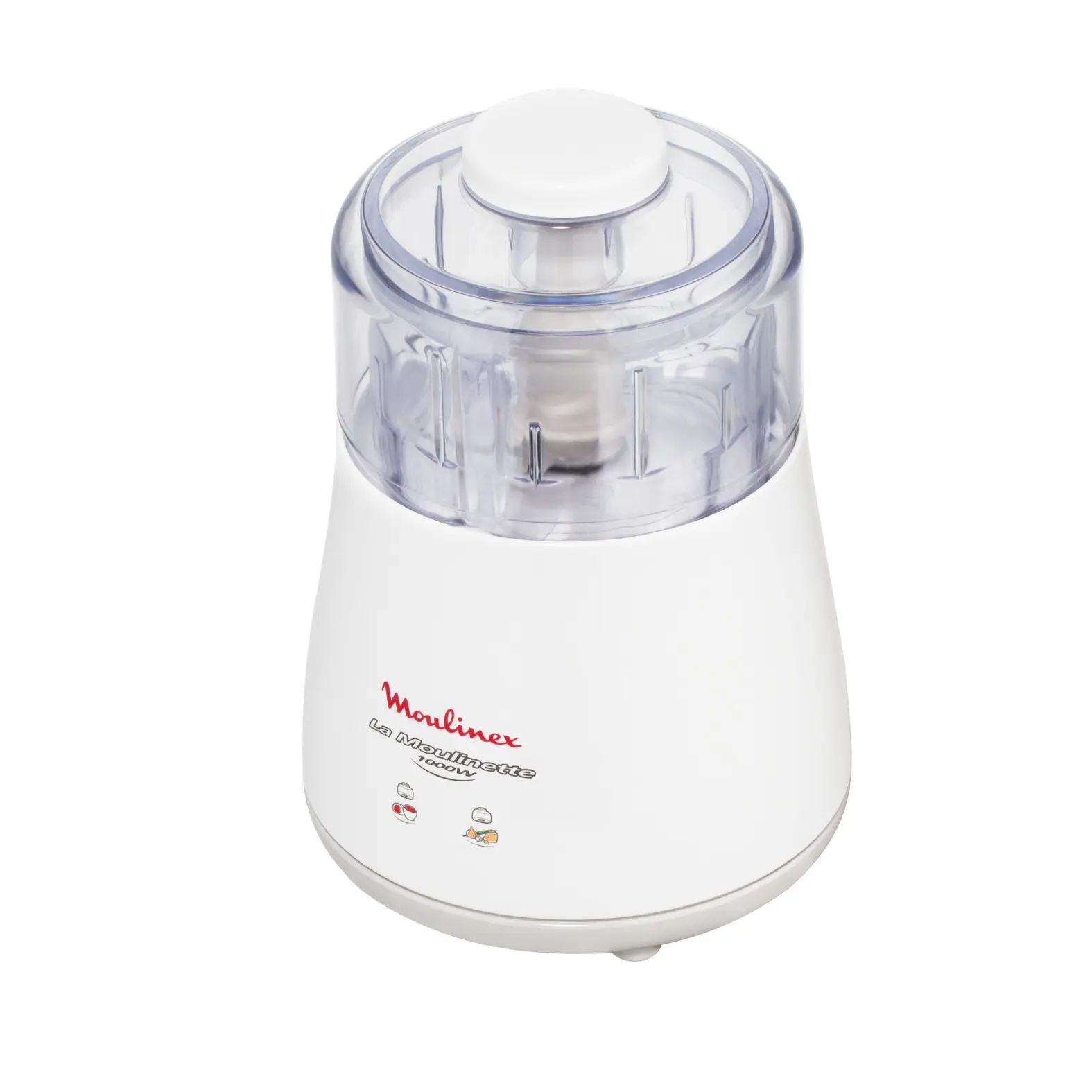 Facile come dire 1-2-3! Con Moulinette 1000 W, tritare in modo versatile ed efficiente non è mai stato così facile. Il più potente Moulinette sul mercato è dotato di una lunga lama a forma di spada, per tagliare in maniera eccellente e di un pratico sistema 1-2-3 per tritare tutti i tipi di ingredienti (cipolle, aglio, spezie, carne, noci, ecc.). Infine, è dotato di una caraffa trasparente e da un recipiente da 330 g, ed entrambi consentono di vedere le preparazioni per una maggiore praticità.