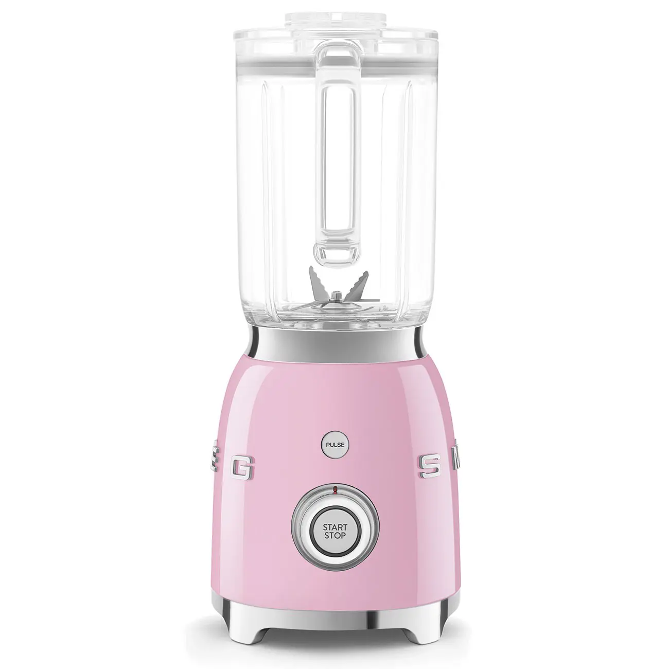 Smeg BLF03PKEU. Tipo: Frullatore da tavolo, Colore del prodotto: Rosa, Lunghezza cavo: 1 m. Capacità ciotola: 1,5 L, Velocità (minima) di rotazione: 9000 Giri/min, Velocità (massima) di rotazione: 18000 Giri/min. Materiale della ciotola di miscelazione: Plastica, Materiale della scocca: Alluminio, Materiale lama: Acciaio inox. Potenza: 800 W, Tensione di ingresso AC: 220-240 V, Frequenza di ingresso AC: 50 Hz. Larghezza: 197 mm, Profondità: 163 mm, Altezza: 397 mm