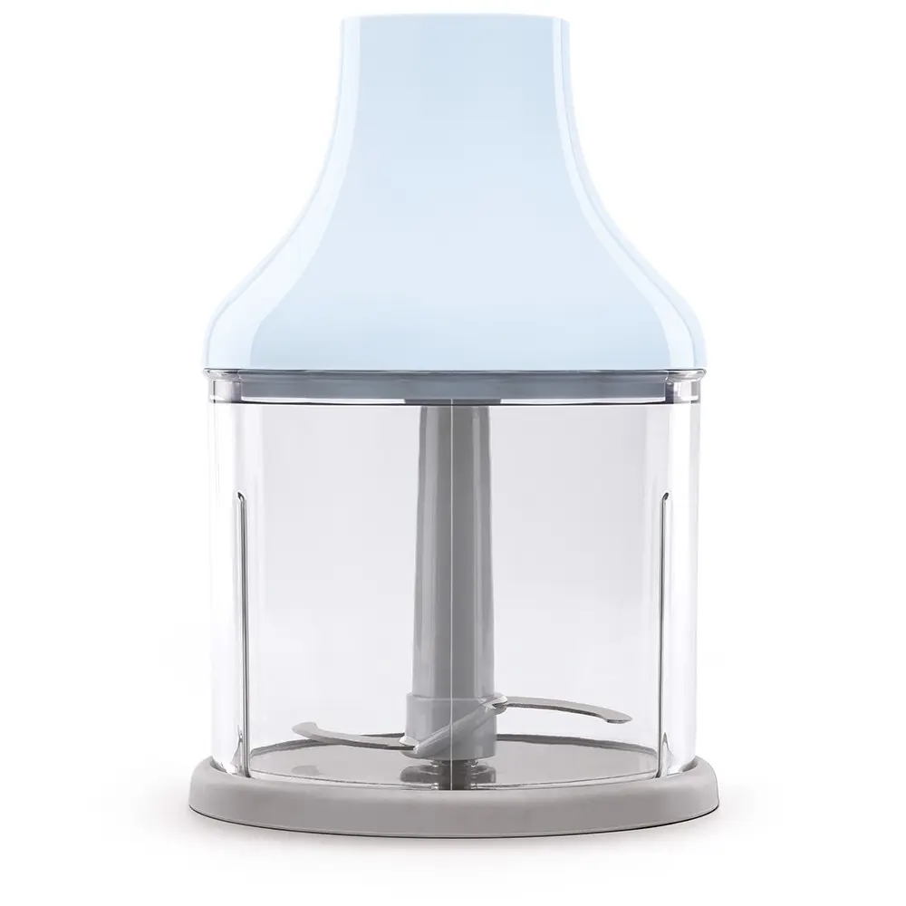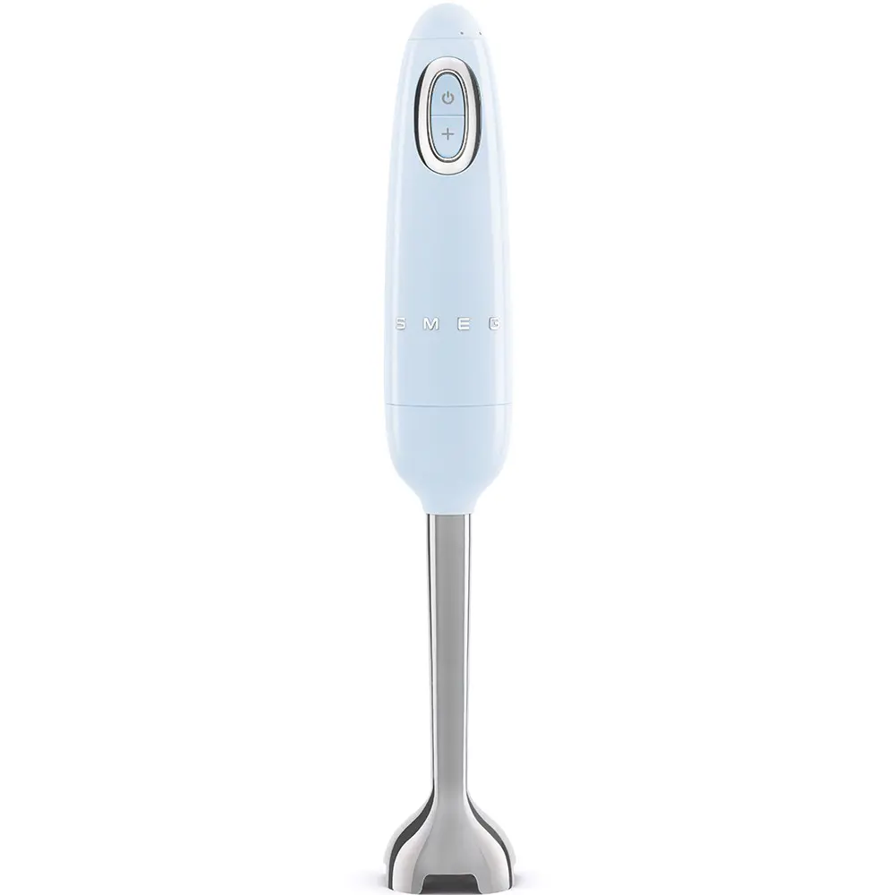 Smeg HBF03PBEU. Velocità (minima) di rotazione: 8150 Giri/min, Velocità (massima) di rotazione: 14850 Giri/min, Tipo di controllo: Pulsanti. Tipo: Frullatore ad immersione, Colore del prodotto: Azzurro, Acciaio inox, Lunghezza cavo: 1,5 m. Bicchiere: 1,4 L. Materiale della scocca: Plastica, Materiale manico: Plastica, Materiale lama: Acciaio inox. Potenza: 700 W, Alimentazione: AC, Tensione di ingresso AC: 220 - 240 V