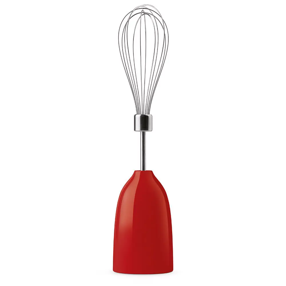 Smeg HBF03RDEU. Velocità (minima) di rotazione: 8150 Giri/min, Velocità (massima) di rotazione: 14850 Giri/min, Tipo di controllo: Pulsanti. Tipo: Frullatore ad immersione, Colore del prodotto: Rosso, Acciaio inox, Lunghezza cavo: 1,5 m. Bicchiere: 1,4 L. Materiale della scocca: Plastica, Materiale manico: Plastica, Materiale lama: Acciaio inox. Potenza: 700 W, Alimentazione: AC, Tensione di ingresso AC: 220 - 240 V
