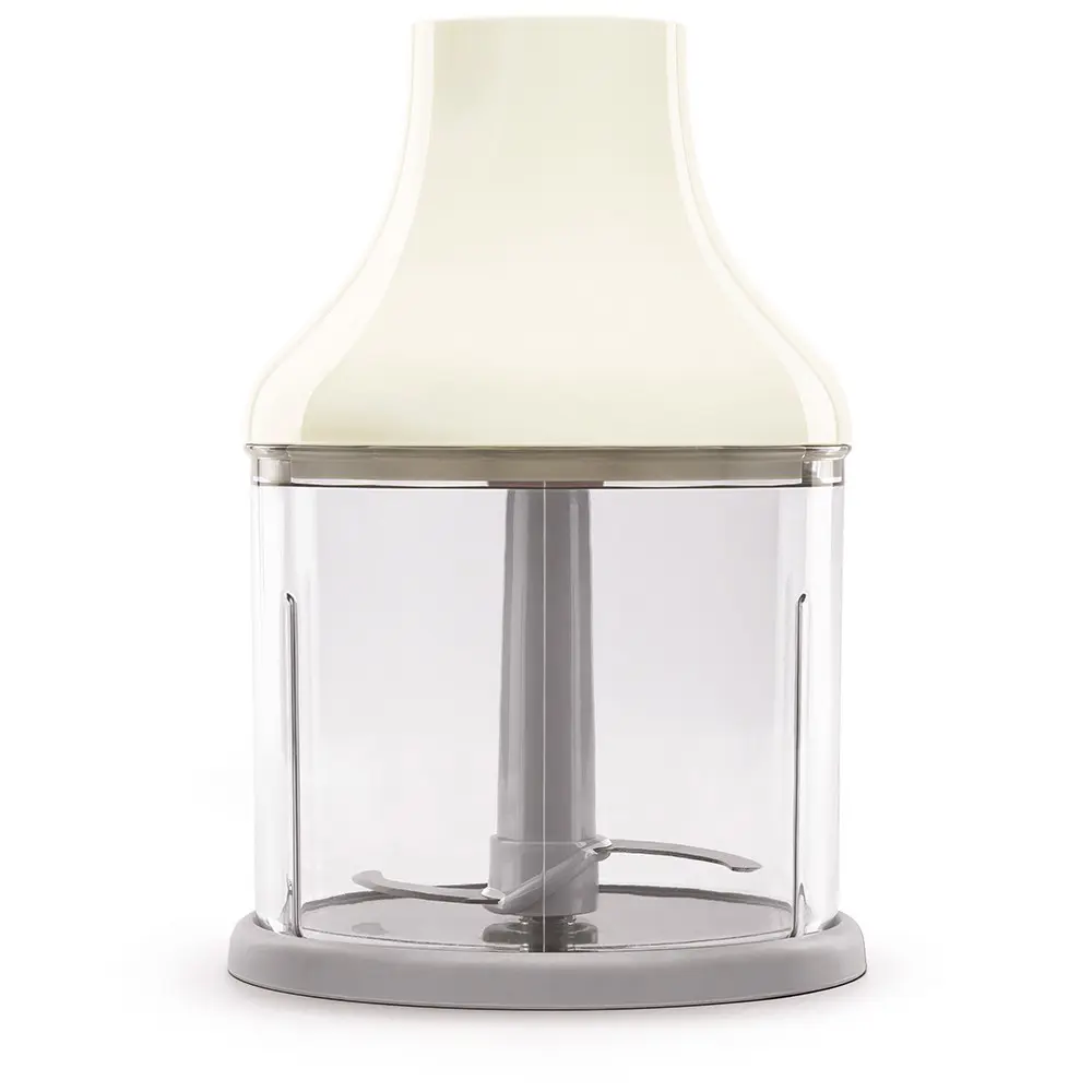 Smeg HBF22CREU. Velocità (minima) di rotazione: 8150 Giri/min, Velocità (massima) di rotazione: 14850 Giri/min, Tipo di controllo: Pulsanti, Manopola. Tipo: Frullatore ad immersione, Colore del prodotto: Crema, Lunghezza cavo: 1,5 m. Materiale della scocca: Plastica, Materiale del bastone: Acciaio inossidabile, Materiale lama: Acciaio inossidabile. Potenza: 700 W, Alimentazione: AC, Tensione di ingresso AC: 220 - 240 V. Larghezza: 65 mm, Profondità: 65 mm, Altezza: 413 mm