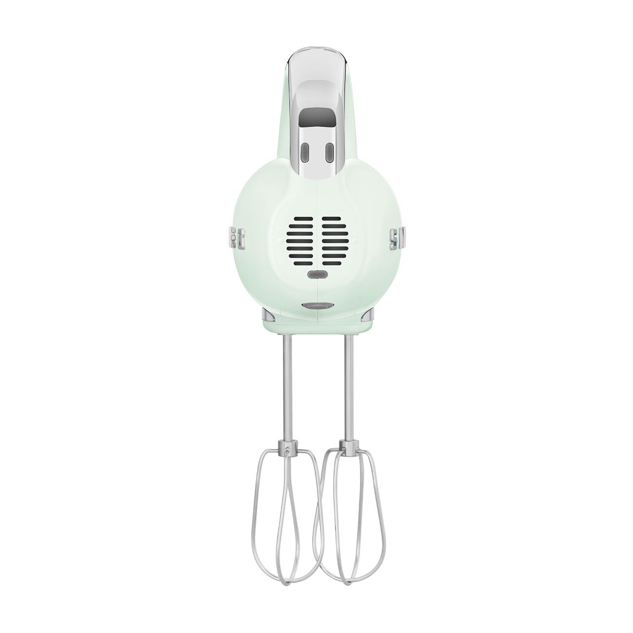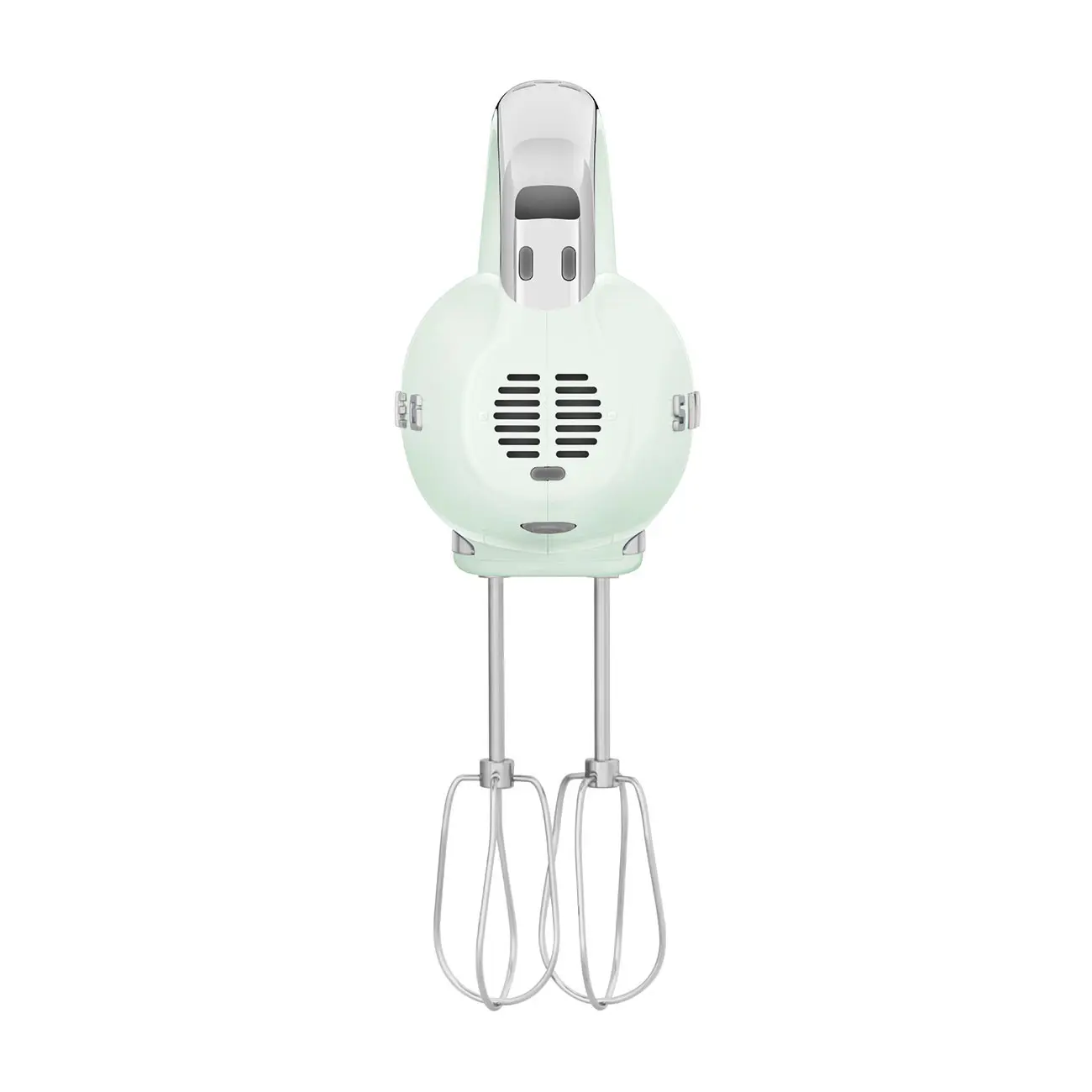 Due fruste a filo, per le consistenze più ariose come panna montata, salse o chiare d’uovo; due fruste optimus, ideali per impasti semi duri quali biscotti e basi per torte; due ganci impastatori per lievitati come pizza o pane. Al termine dell’utilizzo o durante la lavorazione, piedini antiscivolo consentono di appoggiare lo sbattitore garantendo praticità di utilizzo. La custodia in tessuto personalizzata SMEG permette di riporre gli accessori inclusi senza tralasciare la piacevolezza estetica.