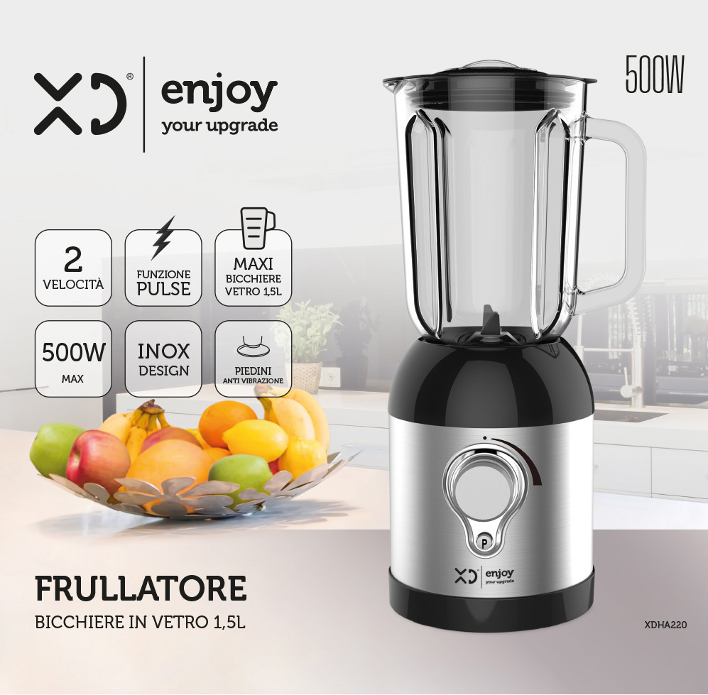XD Enjoy XDHA220 frullatore 1,5 L Frullatore da tavolo 500 W Nero, Argento