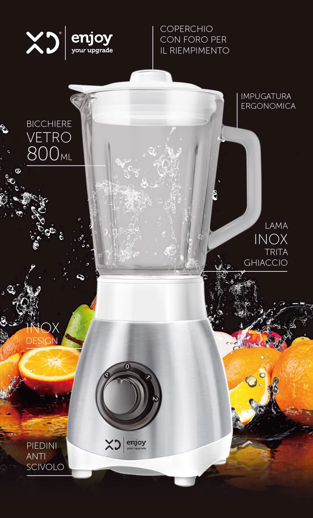 XD Enjoy Frullatore Bicchiere in Vetro 0,8L