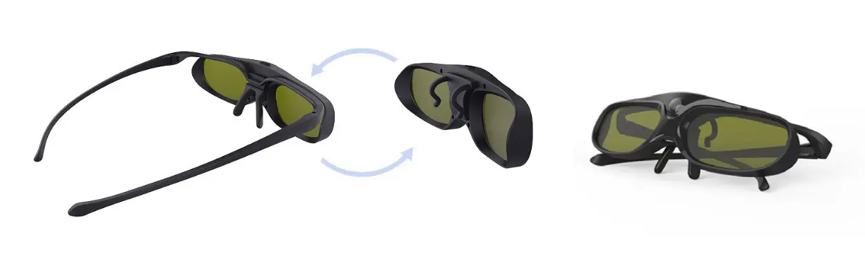 Autonomia di 60 ore con una singola carica, grazie alla batteria ricaricabile integrata ai polimeri di litio da 80 mAh. Ampio angolo di visione di 178 °, le dimensioni dell’obiettivo sono maggiori del 10% rispetto ai normali occhiali 3D. Le lenti LCD con valvola di risposta alla luce inferiore a 2,0 ms offrono un’eccellente trasmissione, riducendo l’immagine fantasma. Grazie al chip intelligente, gli occhiali 3D si accendono solo quando ricevono il segnale DLP-Link; e passano alla modalità attesa quando il segnale scompare. Comodi da indossare, possono essere agganciati alla montatura dei comuni occhiali da vista. Compatibili con i proiettori XGIMI MoGo, MoGo Pro, Halo e H2.
