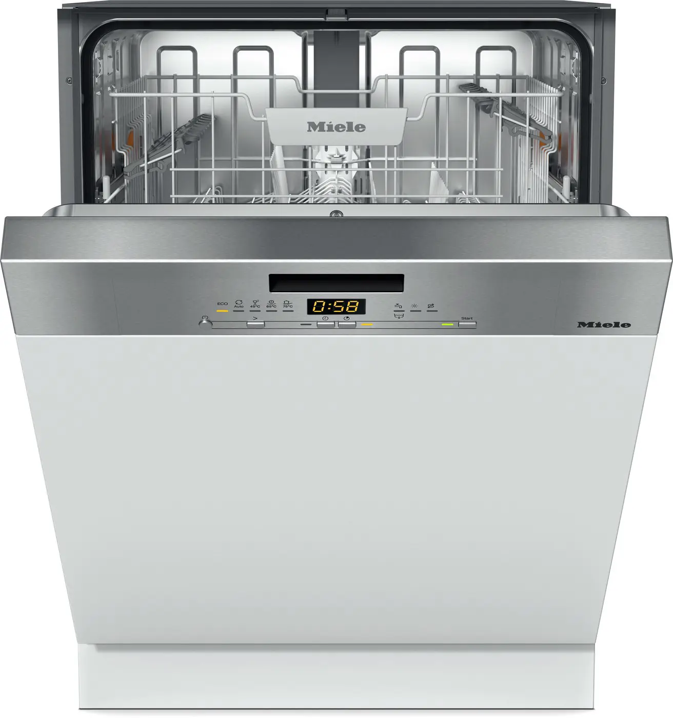 Miele G 5611 i CLST. Posizionamento dell'apparecchio: Libera installazione, Dimensione: Dimensione massima (60 cm), Colore della porta: Bianco. Numero di coperti: 13 coperti, Classe emissione rumore: C, Emissione acustica: 45 dB. Classe efficienza energetica: A, Consumo di acqua per ciclo: 8,2 L, Consumo energetico per 100 cicli: 54 kWh. Larghezza: 598 mm, Profondità: 570 mm, Altezza: 805 mm. Tecnologie Miele (lavaggio stoviglie): AutoOpen drying, BrilliantGlassCare, EcoPower, QuickPowerWash