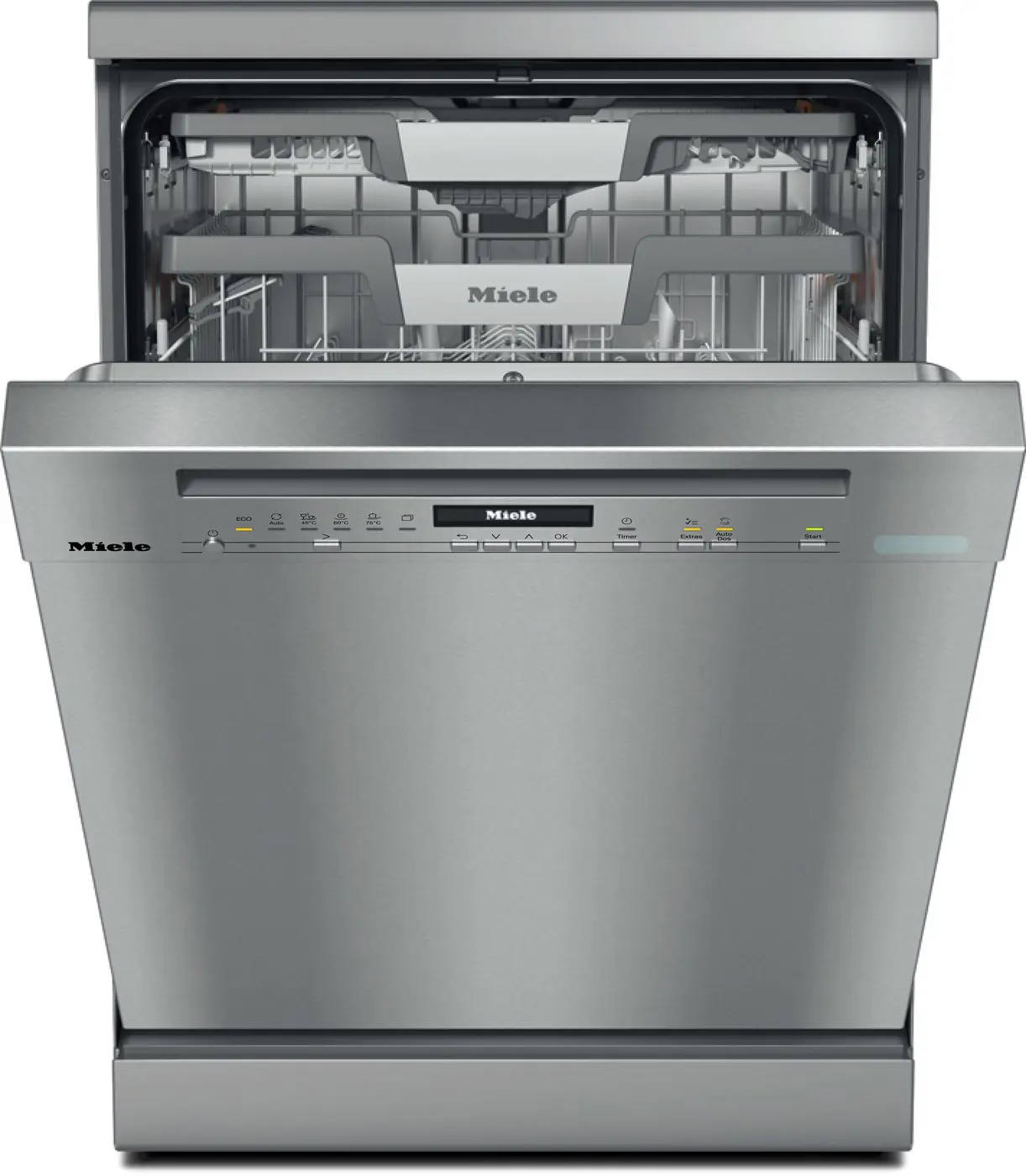 Miele G 7040 SC CLST AutoDos. Posizionamento dell'apparecchio: Libera installazione, Dimensione: Dimensione massima (60 cm), Colore della porta: Acciaio inox. Numero di coperti: 14 coperti, Classe emissione rumore: B, Emissione acustica: 43 dB. Applicazioni per il controllo supportate: Miele@Home. Classe efficienza energetica: A, Consumo di acqua per ciclo: 8,4 L, Consumo energetico per 100 cicli: 54 kWh. Larghezza: 598 mm, Profondità: 600 mm, Altezza: 845 mm