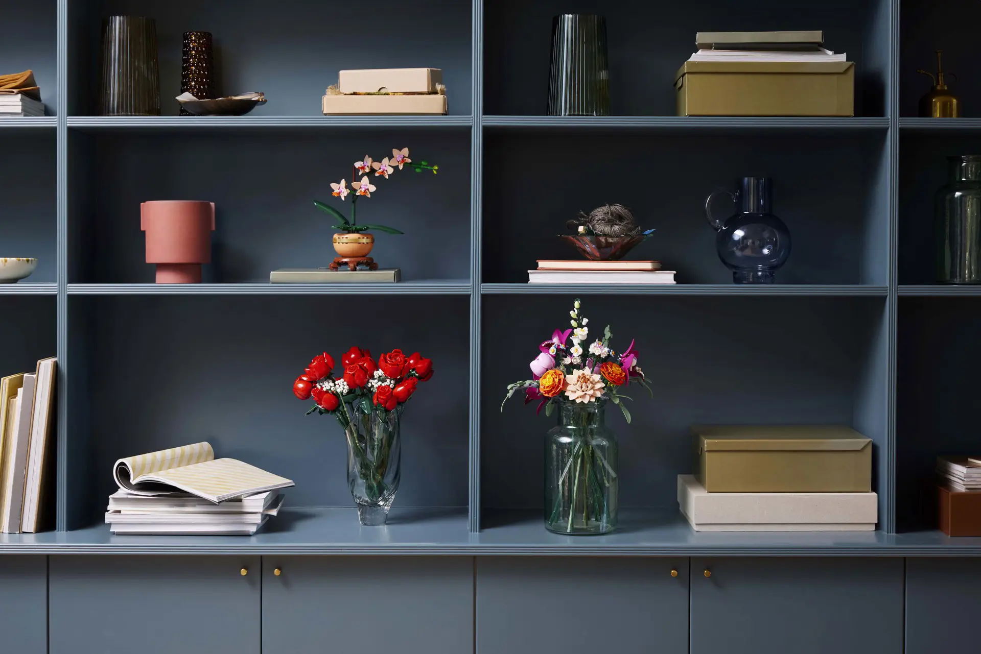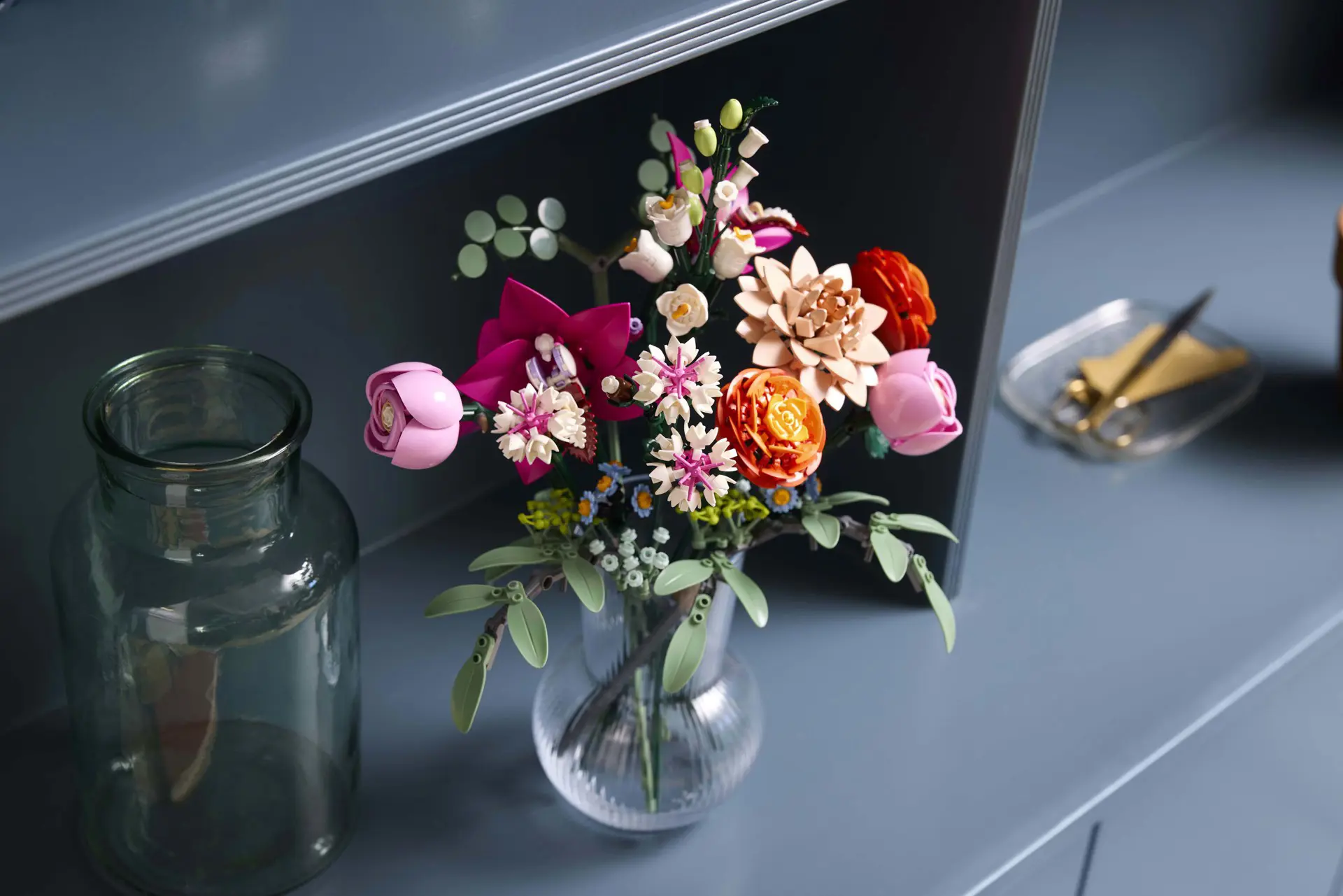 I fioristi in erba possono rilassarsi mentre costruiscono il bouquet, composto da 15 steli di fiori LEGO, tra cui margherite, fiordalisi, eucalipto, fiori di sambuco, rose, ranuncoli, orchidee cymbidium, una dalia waterlily e una campanula. Tutti gli steli sono regolabili, incoraggiando i costruttori a creare un bouquet su misura da utilizzare come decorazione floreale per la casa o l’ufficio. Per una maggiore personalizzazione, i fiori possono essere disposti con altri bouquet LEGO, disponibili separatamente, per creare un display floreale più grande e unico.