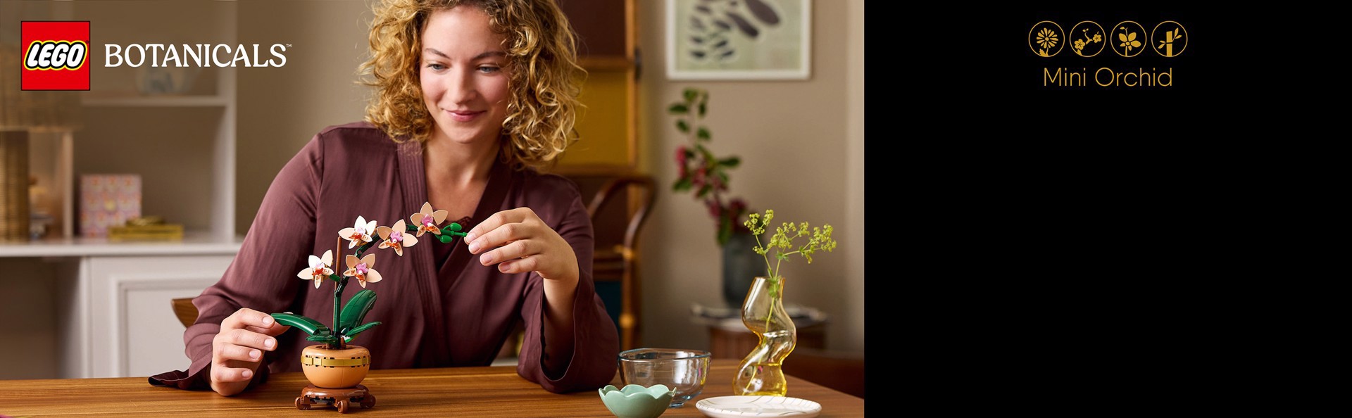 Display floreale: lascia sbocciare la creatività con il kit costruibile Mini-orchidea LEGO® Botanicals per adulti, che consente ai fioristi in erba di creare ed esporre un fiore LEGO