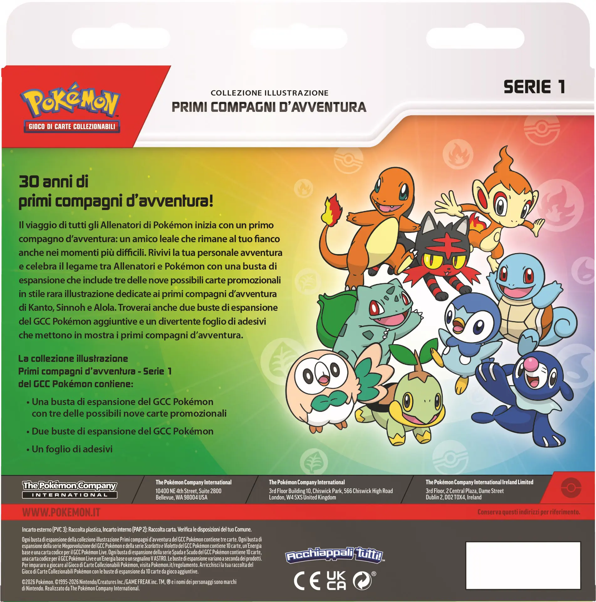 La collezione illustrazione Primi compagni d'avventura - Serie 1 del GCC Pokémon contiene: