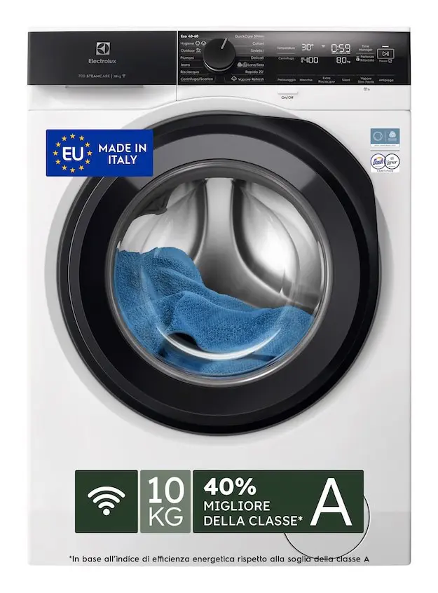 Electrolux EW7F410Y Lavatrice serie 700 SteamCare 10 kg, Caricamento frontale, 10 kg, B, 72 dB, 1351 Giri/min, A