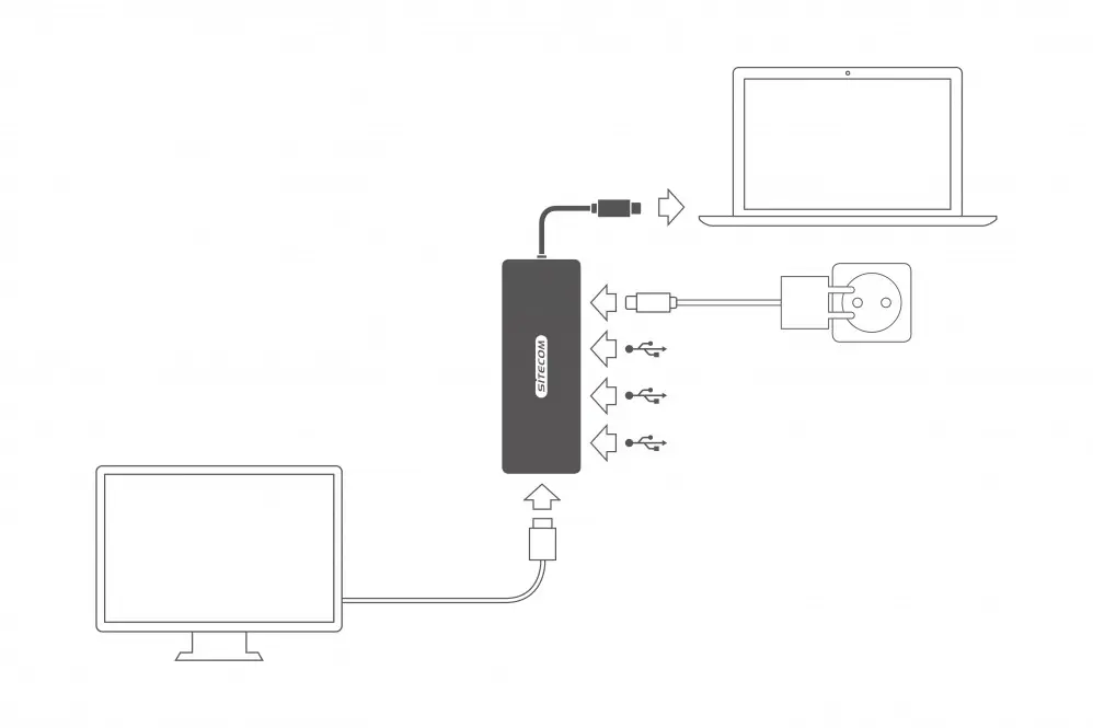 SITECOM CN-380 cable gender changer USB-C HDMI, USB-C, 3x USB 3.0 Grigio