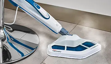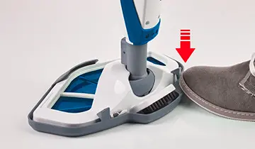 La spazzola Vaporforce con la sua ampia superficie garantisce una pulizia rapida ed efficace su tutti i tipi di pavimento; la sua particolare forma e lo snodo flessibile permettono di raggiungere anche gli angoli più difficili.