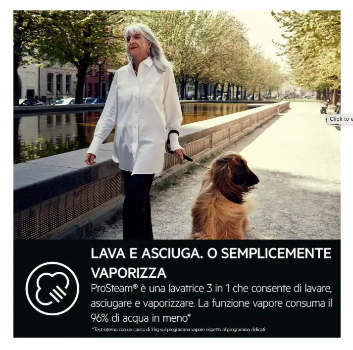 La Lavasciuga Serie 7000 ProSteam non solo ti permette di lavare e asciugare ma, grazie alla potenza del vapore, rinfresca i capi risparmiando il 96% di acqua. Mantieni i tessuti perfetti nel tempo.