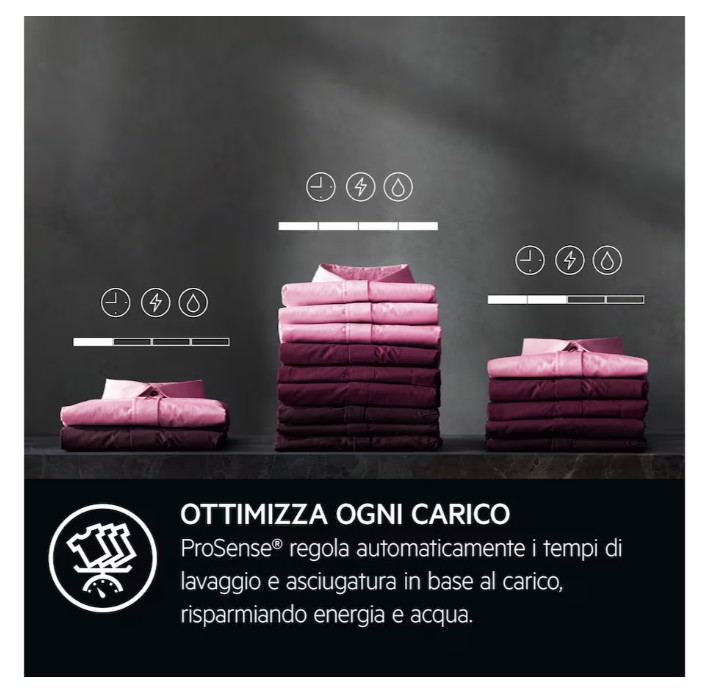 | Tecnologie AEG (cura dei vestiti) | DualSense, PreciseLoad, Tecnologia ProSense, ProSteam® |