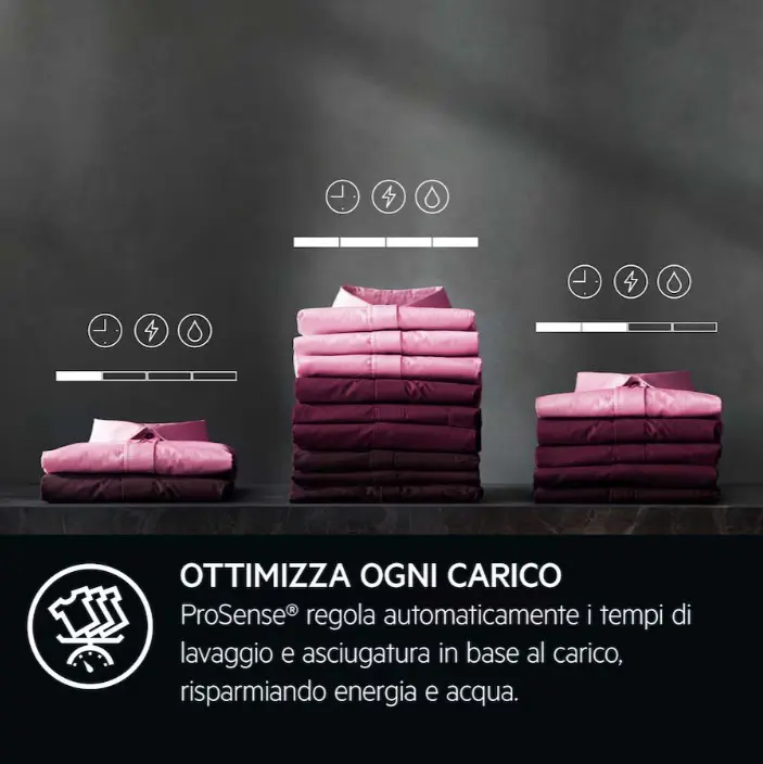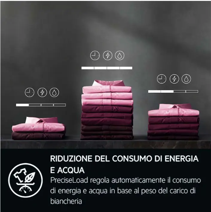 La Tecnologia PreciseLoad adatta automaticamente tempo, acqua ed energia in base al peso del carico. In questo modo si ottiene un ciclo personalizzato con risultati senza precedenti.