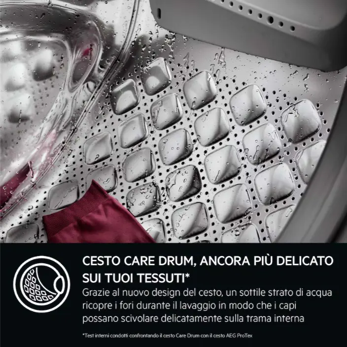 *Basato su test interni, confrontando il consumo energetico delle lavatrici con pompa di calore e quelle tradizionali durante la fase di asciugatura, utilizzando il ciclo completo Eco 40-60 a carico massimo (6 kg di cotone IEC). **Basato su test interni, confrontando la temperatura massima di ingresso nel tamburo dell'aria della pompa di calore e la tradizionale lavasciuga a condensazione.