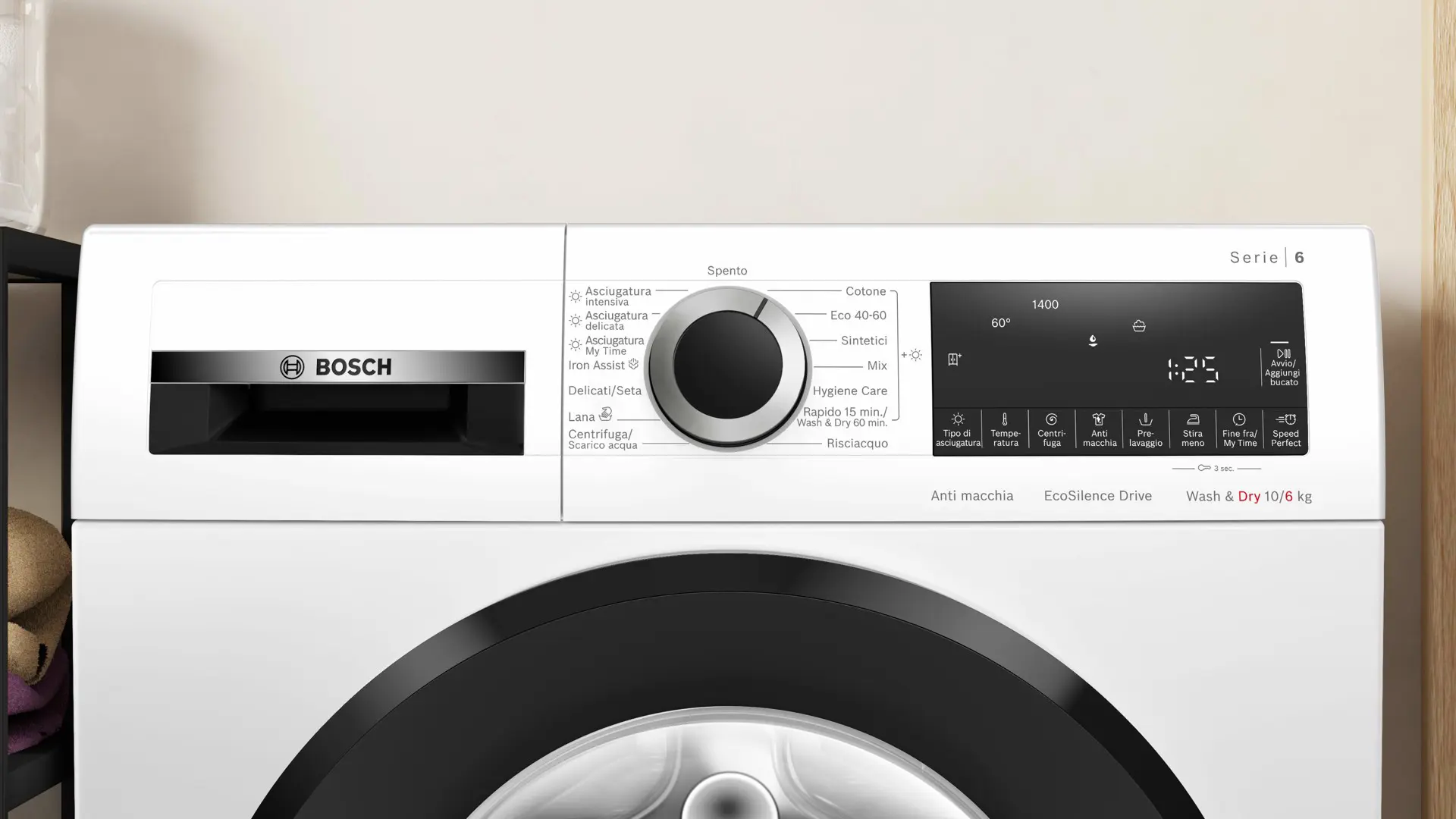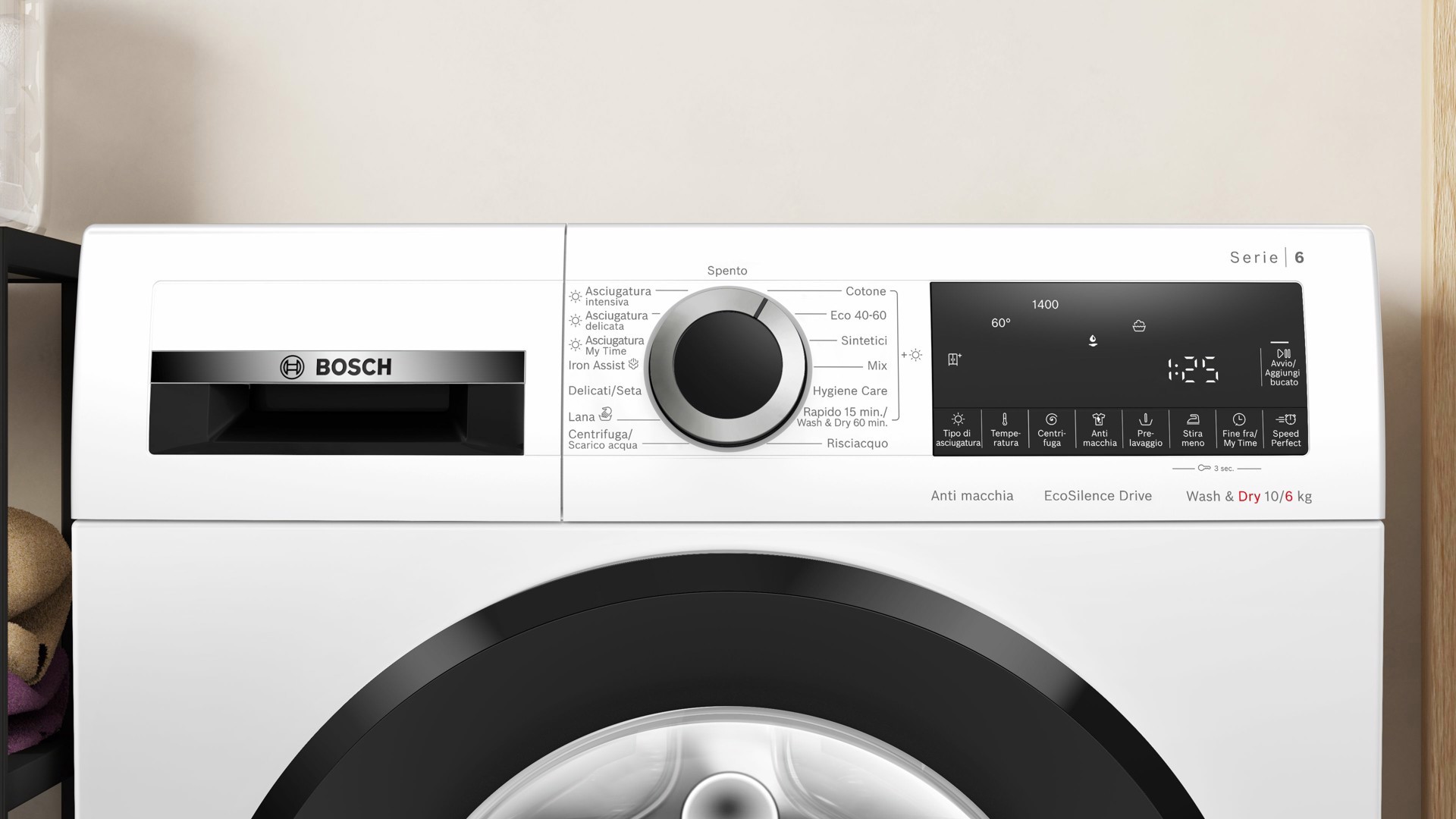 | Tecnologie Bosch (cura dei vestiti) | ActiveWater Plus, AutoDry, EcoSilence Drive™, Iron Assist, SpeedPerfect |