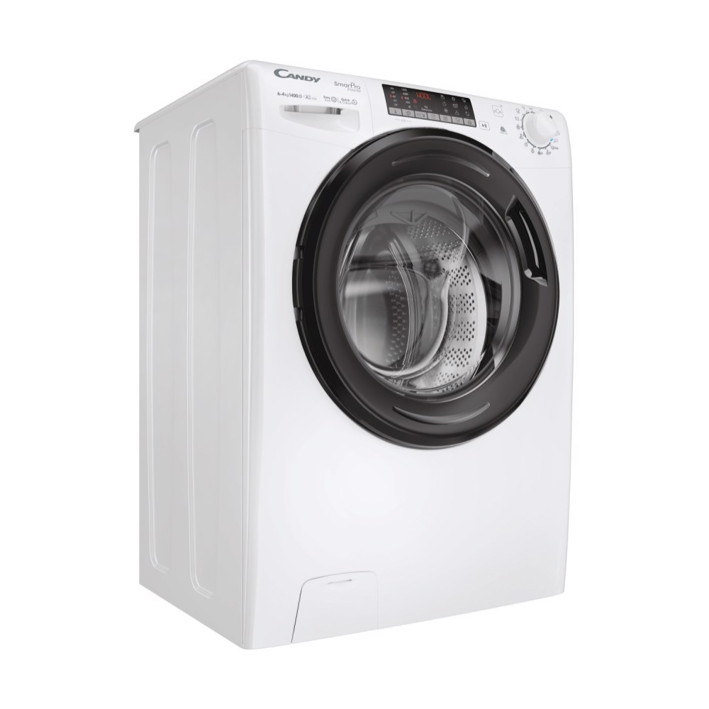 Candy Smart Pro CSOW44644TWMB6-S, Caricamento frontale, Libera installazione, Bianco, Sinistra, Nero, Trasparente, Manopola, Touch