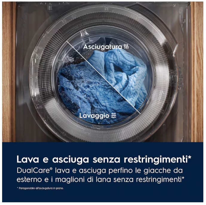 Lavaggio, asciugatura o vapore, tutto in uno. La lavasciuga 800 con tecnologia UltraCare fornisce una pulizia efficiente anche a 30°C*. Premiscela e distribuisce uniformemente detergente e ammorbidente per un’asciugatura accurata evitando il ristringimento di capi come la lana.