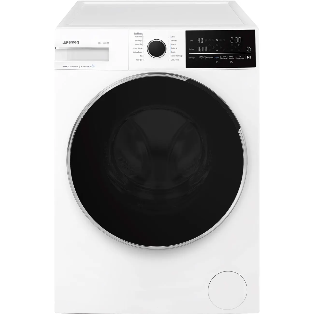 Smeg WDN854SLD, Caricamento frontale, Libera installazione, Bianco, Sinistra, Nero, Nero