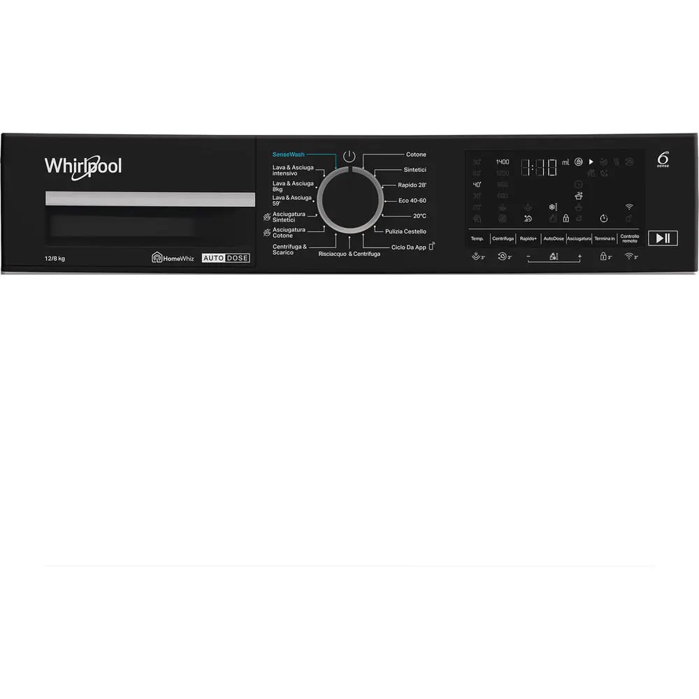 Whirlpool Lavasciuga a libera installazione - WPD 2836W ADS IT, Caricamento frontale, Libera installazione, Bianco, Sinistra, Nero, Nero
