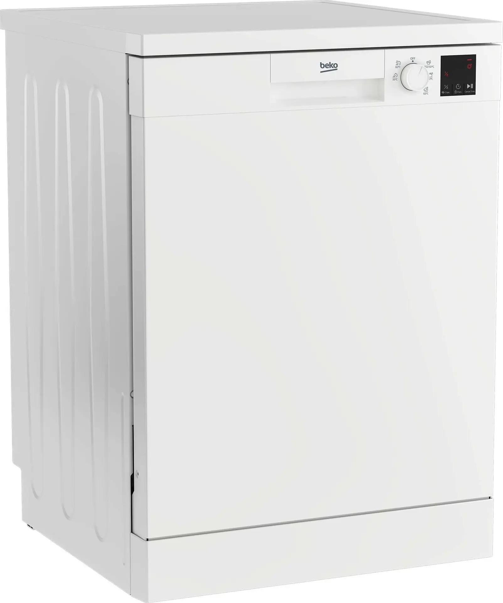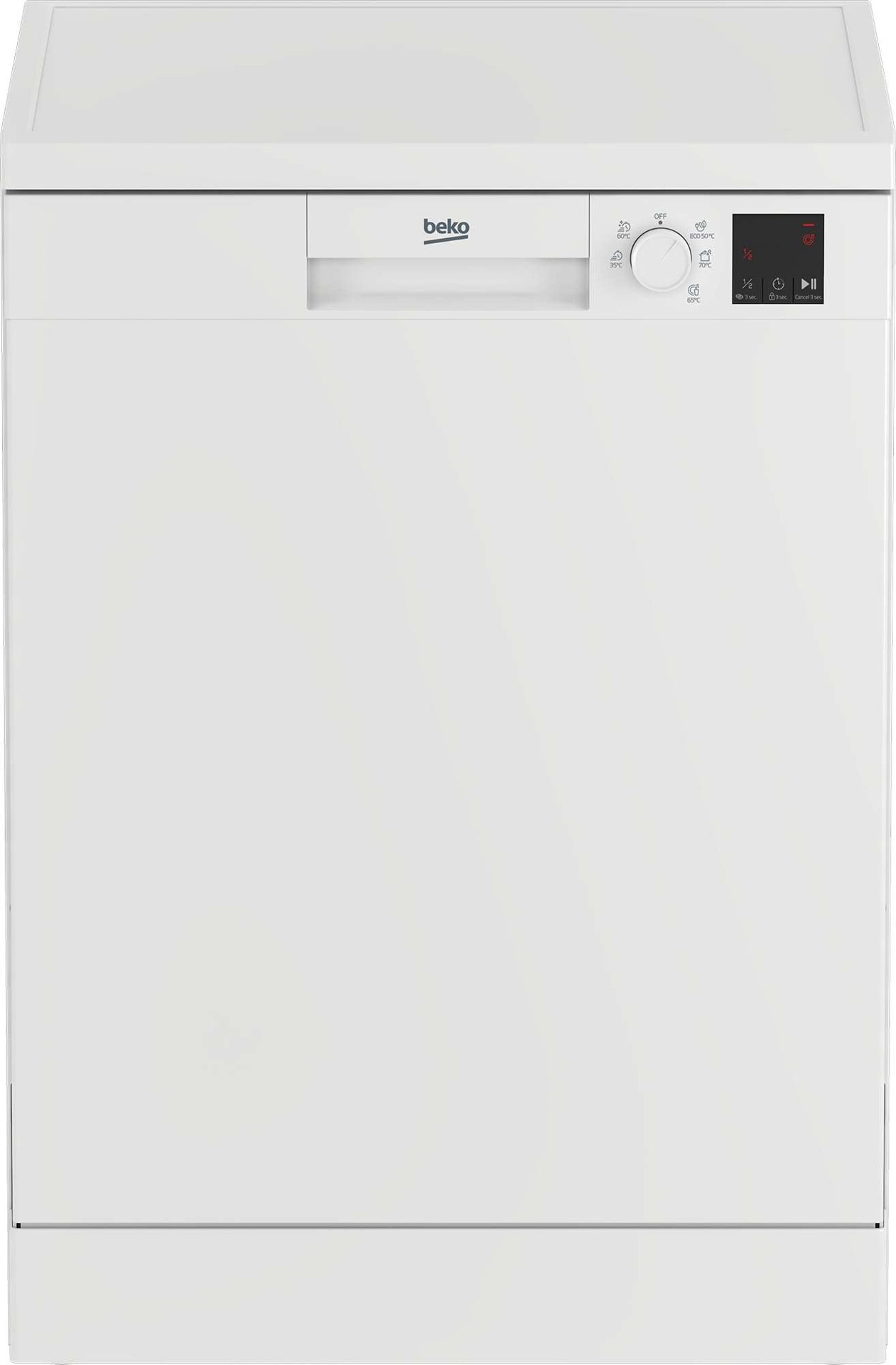 Beko DVN05320W. Posizionamento dell'apparecchio: Libera installazione, Dimensione: Dimensione massima (60 cm), Colore della porta: Bianco. Numero di coperti: 13 coperti, Classe emissione rumore: C, Emissione acustica: 49 dB. Classe efficienza energetica: E, Consumo di acqua per ciclo: 12,9 L, Consumo energetico per 100 cicli: 94 kWh. Larghezza: 598 mm, Profondità: 600 mm, Altezza: 850 mm. Larghezza imballo: 644 mm, Profondità imballo: 661 mm, Altezza imballo: 889 mm