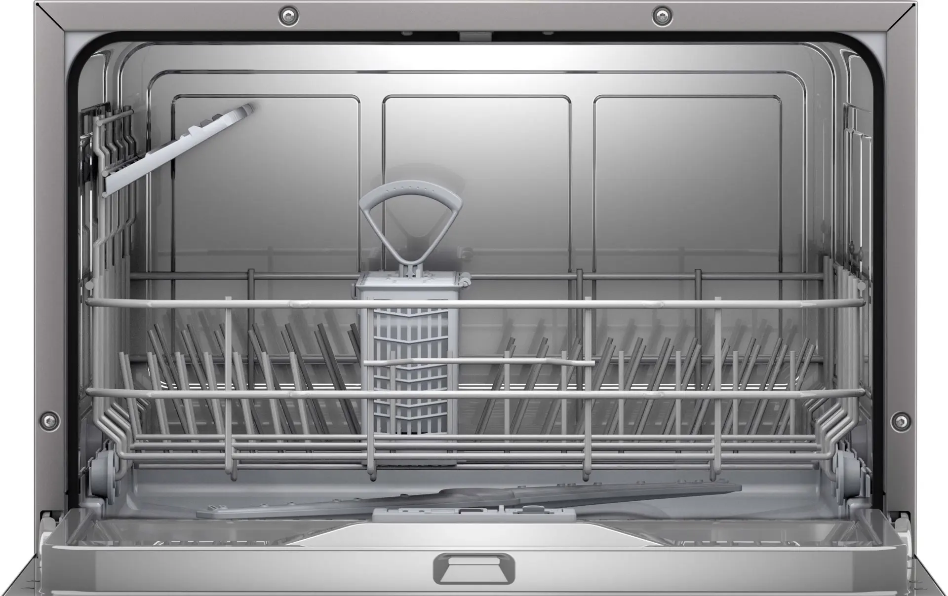 Bosch Serie 2 SKS2ITI00E Lavastoviglie compatta da libero posizionamento 55 cm Argento Classe E. Posizionamento dell'apparecchio: Superficie piana, Dimensione: Compatta, Colore della porta: Argento. Numero di coperti: 6 coperti, Classe emissione rumore: C, Emissione acustica: 49 dB. Classe efficienza energetica: E, Consumo di acqua per ciclo: 8 L, Consumo energetico per 100 cicli: 55 kWh. Larghezza: 551 mm, Profondità: 500 mm, Altezza: 450 mm. Larghezza imballo: 630 mm, Profondità imballo: 590 mm, Altezza imballo: 545 mm