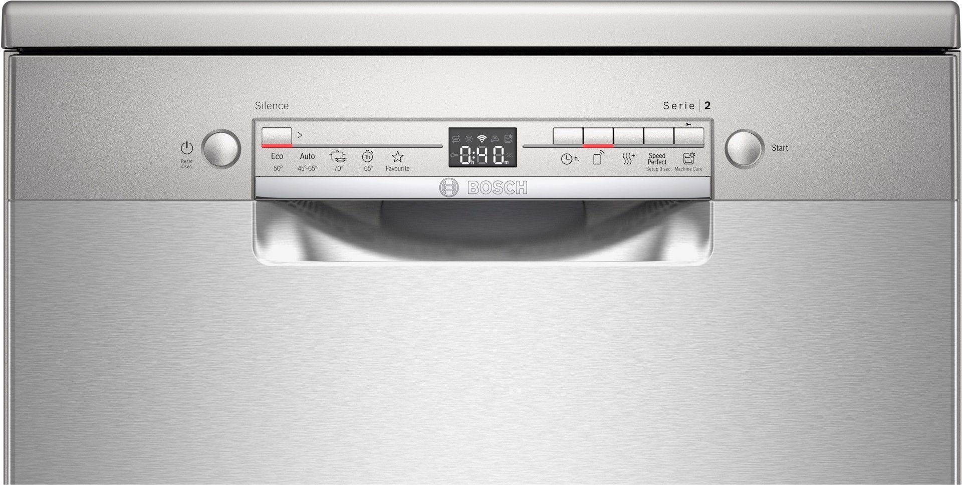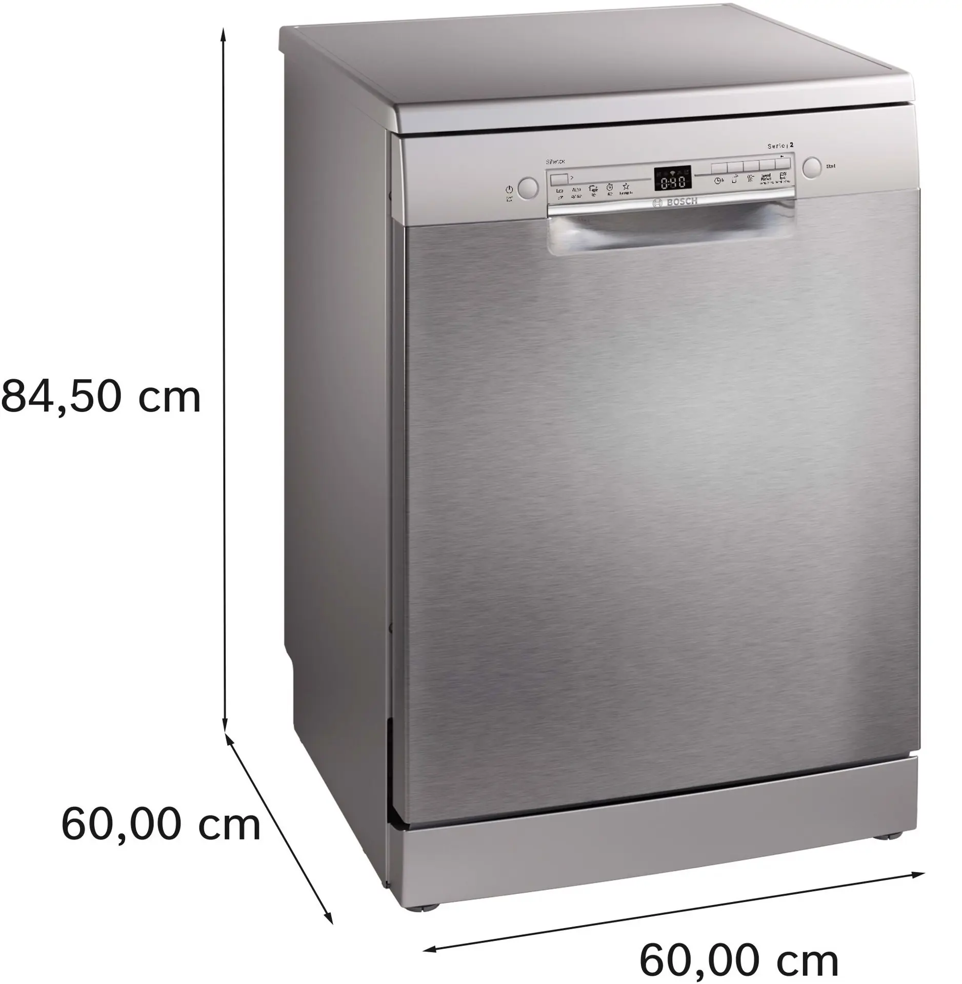 Bosch Serie 2 SMS2ITI33E Lavastoviglie da libera installazione 60 cm Acciaio spazzolato anti-impronta Classe E, Libera installazione, Dimensione massima (60 cm), Acciaio inox, Pulsanti, 1,75 m, 1,65 m