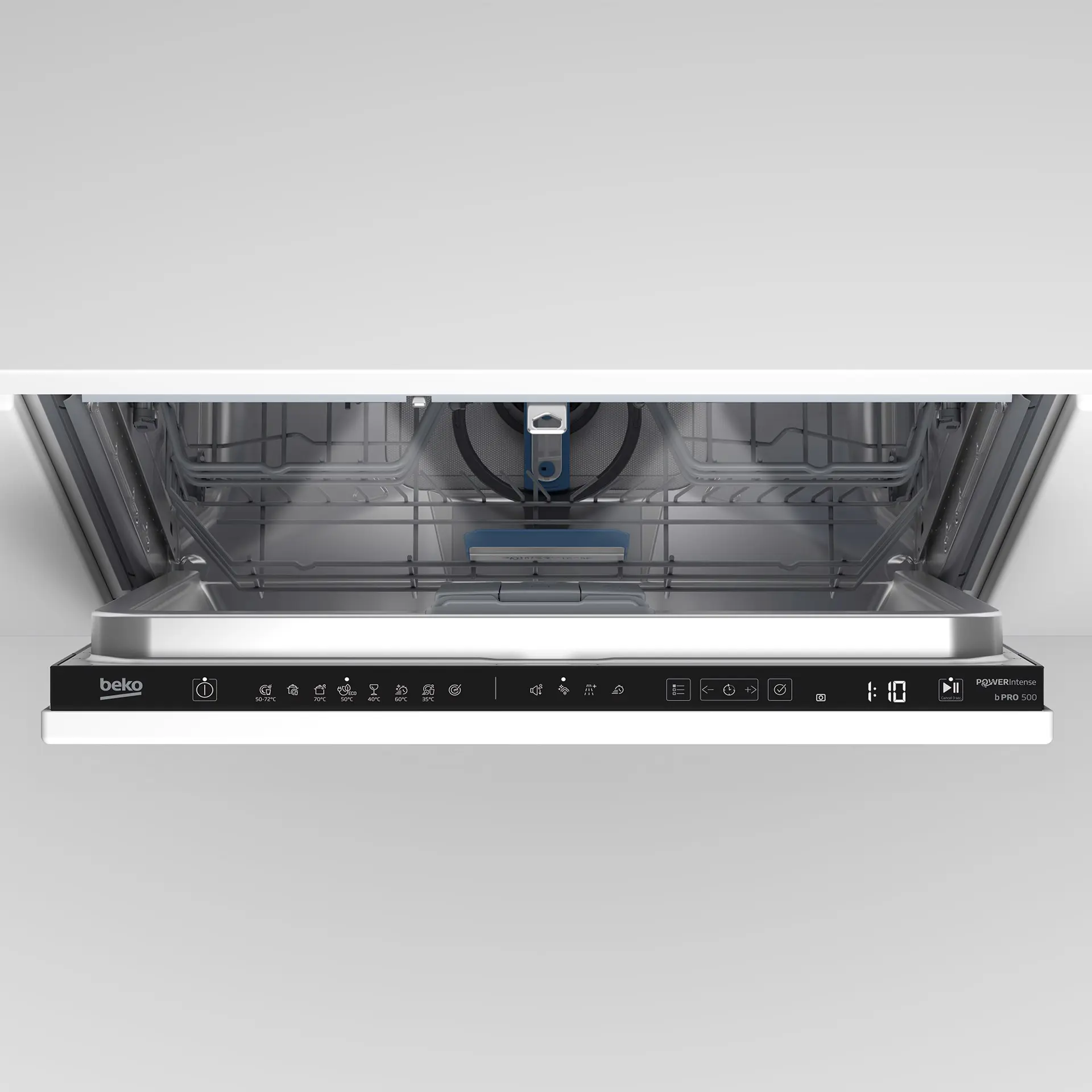 Beko BDIN38552P: Lavastoviglie a Scomparsa Totale Classe B, 60 cm, 15 Coperti. Posizionamento dell'apparecchio: A scomparsa totale, Dimensione: Dimensione massima (60 cm), Colore della porta: Bianco. Numero di coperti: 15 coperti, Classe emissione rumore: A, Emissione acustica: 40 dB. Classe efficienza energetica: B, Consumo di acqua per ciclo: 8,9 L, Consumo energetico per 100 cicli: 65 kWh. Larghezza: 598 mm, Profondità: 550 mm, Altezza: 818 mm. Tecnologie Beko (lavaggio stoviglie): Fast+, SilentWash, SelfDry, SteamGloss®, SensorAdapt, AquaFlex®