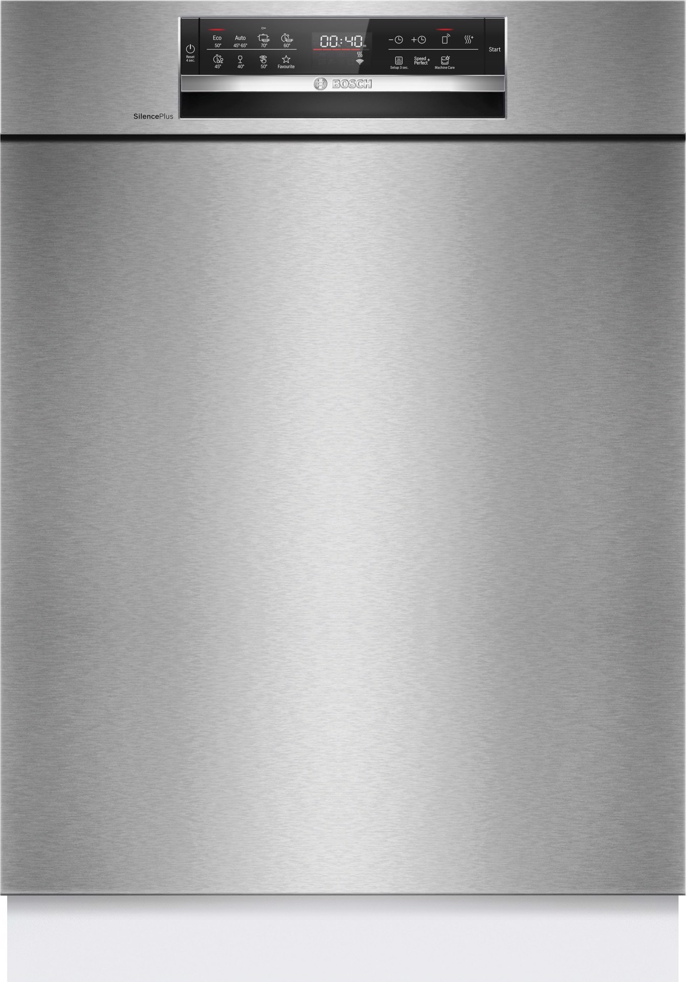 Bosch Serie 6 SMU6ECS12E Lavastoviglie da incasso sottopiano 60 cm Acciaio spazzolato Classe A. Posizionamento dell'apparecchio: Sottopiano, Dimensione: Dimensione massima (60 cm), Colore della porta: Acciaio inox. Numero di coperti: 14 coperti, Classe emissione rumore: B, Emissione acustica: 42 dB. Regolazione piedini: 6 cm, Applicazioni per il controllo supportate: Bosch Home Connect. Classe efficienza energetica: A, Consumo di acqua per ciclo: 9 L, Consumo energetico per 100 cicli: 65 kWh. Larghezza: 598 mm, Profondità: 573 mm, Altezza: 815 mm