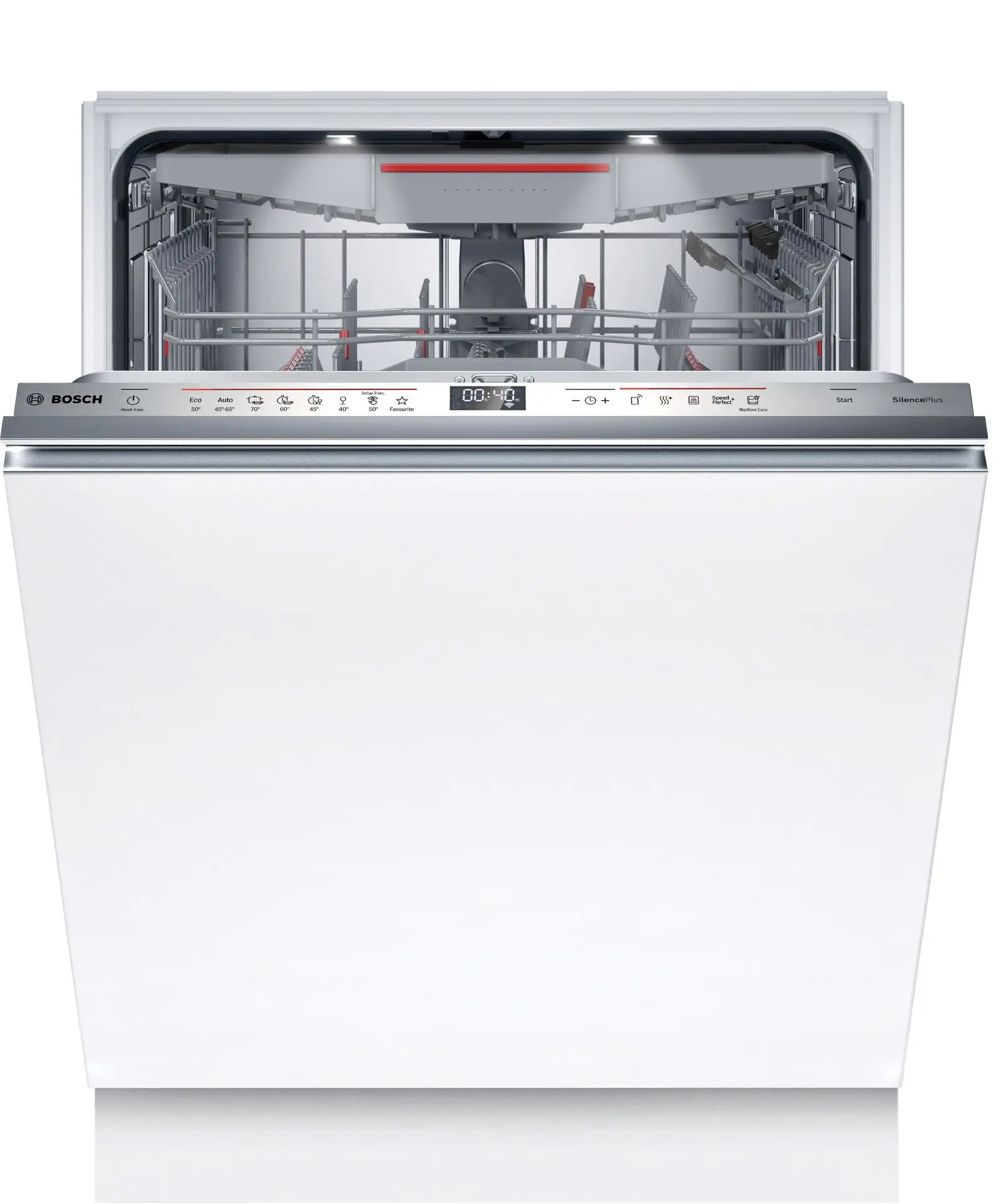 Bosch Serie 6 SMV6ECX10E Lavastoviglie da incasso a scomparsa totale 60 cm Classe A. Posizionamento dell'apparecchio: A scomparsa totale, Dimensione: Dimensione massima (60 cm), Colore pannello di controllo: Acciaio inox. Numero di coperti: 14 coperti, Classe emissione rumore: B, Emissione acustica: 42 dB. Regolazione piedini: 6 cm, Applicazioni per il controllo supportate: Bosch Home Connect. Classe efficienza energetica: A, Consumo di acqua per ciclo: 9 L, Consumo energetico per 100 cicli: 54 kWh. Larghezza: 598 mm, Profondità: 550 mm, Altezza: 815 mm