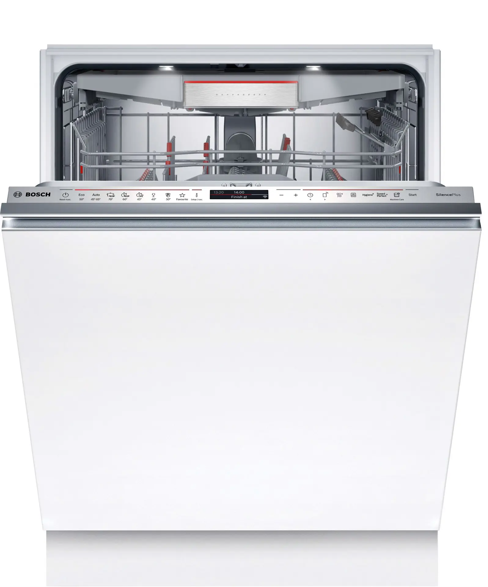 Bosch Serie 8 SMV8ECX01E Lavastoviglie da incasso a scomparsa totale 60 cm Classe A. Posizionamento dell'apparecchio: A scomparsa totale, Dimensione: Dimensione massima (60 cm), Tipo di controllo: Touch. Numero di coperti: 14 coperti, Classe emissione rumore: B, Emissione acustica: 42 dB. Regolazione piedini: 6 cm, Applicazioni per il controllo supportate: Home Connect. Classe efficienza energetica: A, Consumo di acqua per ciclo: 9 L, Consumo energetico per 100 cicli: 54 kWh. Larghezza: 598 mm, Profondità: 550 mm, Altezza: 815 mm