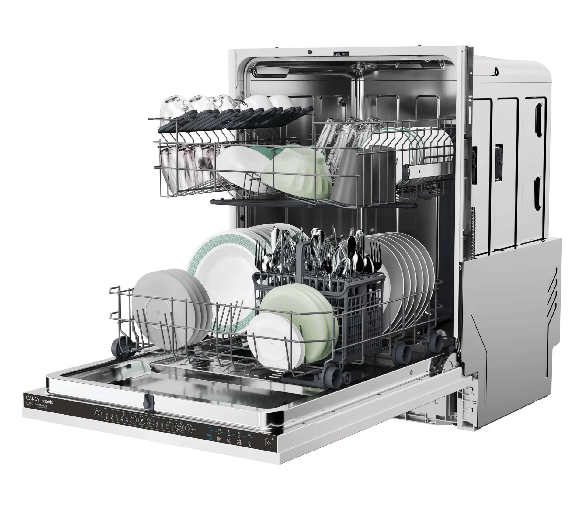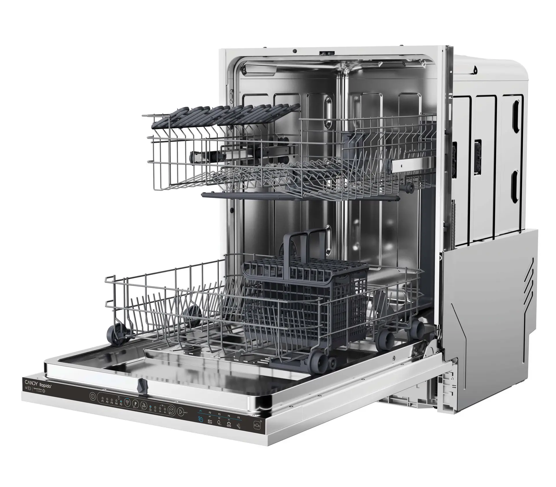 Candy RapidÓ CIU 3C7L0B. Posizionamento dell'apparecchio: A scomparsa totale, Dimensione: Dimensione massima (60 cm), Colore pannello di controllo: Nero. Numero di coperti: 13 coperti, Classe emissione rumore: C, Emissione acustica: 47 dB. Applicazioni per il controllo supportate: hOn. Classe efficienza energetica: C, Consumo di acqua per ciclo: 10,9 L, Consumo energetico per 100 cicli: 73 kWh. Larghezza: 597 mm, Profondità: 555 mm, Altezza: 818 mm