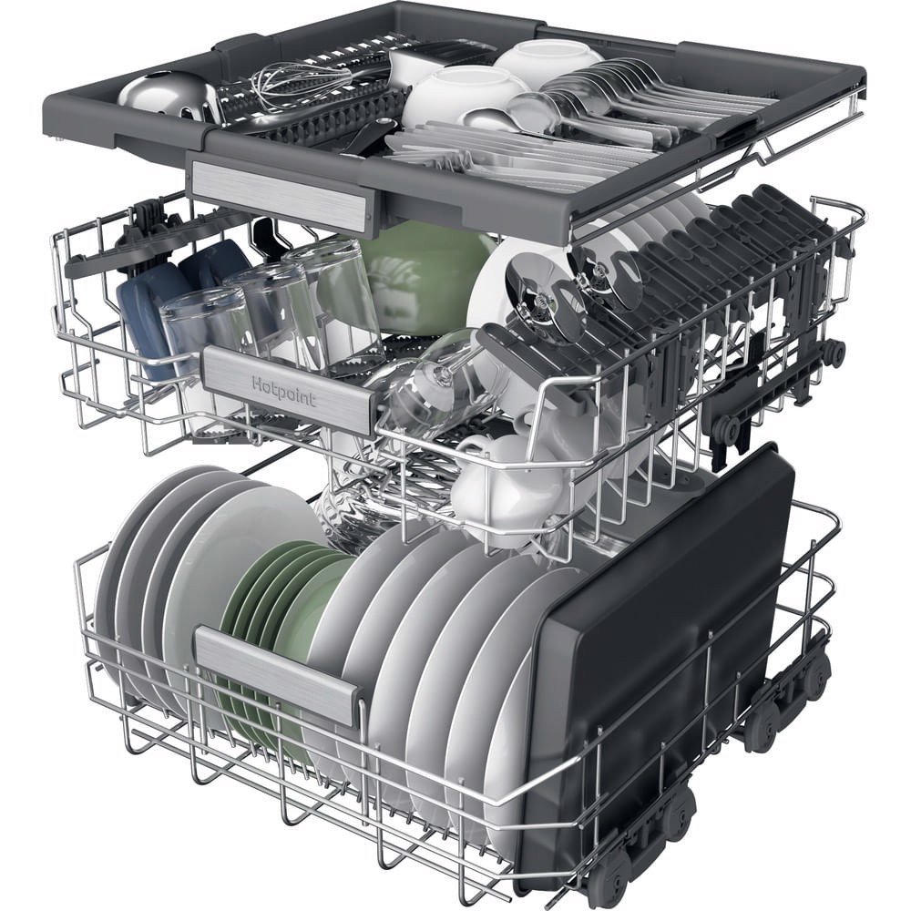 L'innovativa lavastoviglie da incasso Hotpoint presenta la vasca Maxi Space: uno spazio extra capiente con cesto flessibile dove tutto trova posto, grazie a soluzioni intelligenti e versatili pensate per adattarsi a ogni tipo di carico. Infatti, è possibile sollevare il secondo cesto, creando spazio per i piatti più alti.